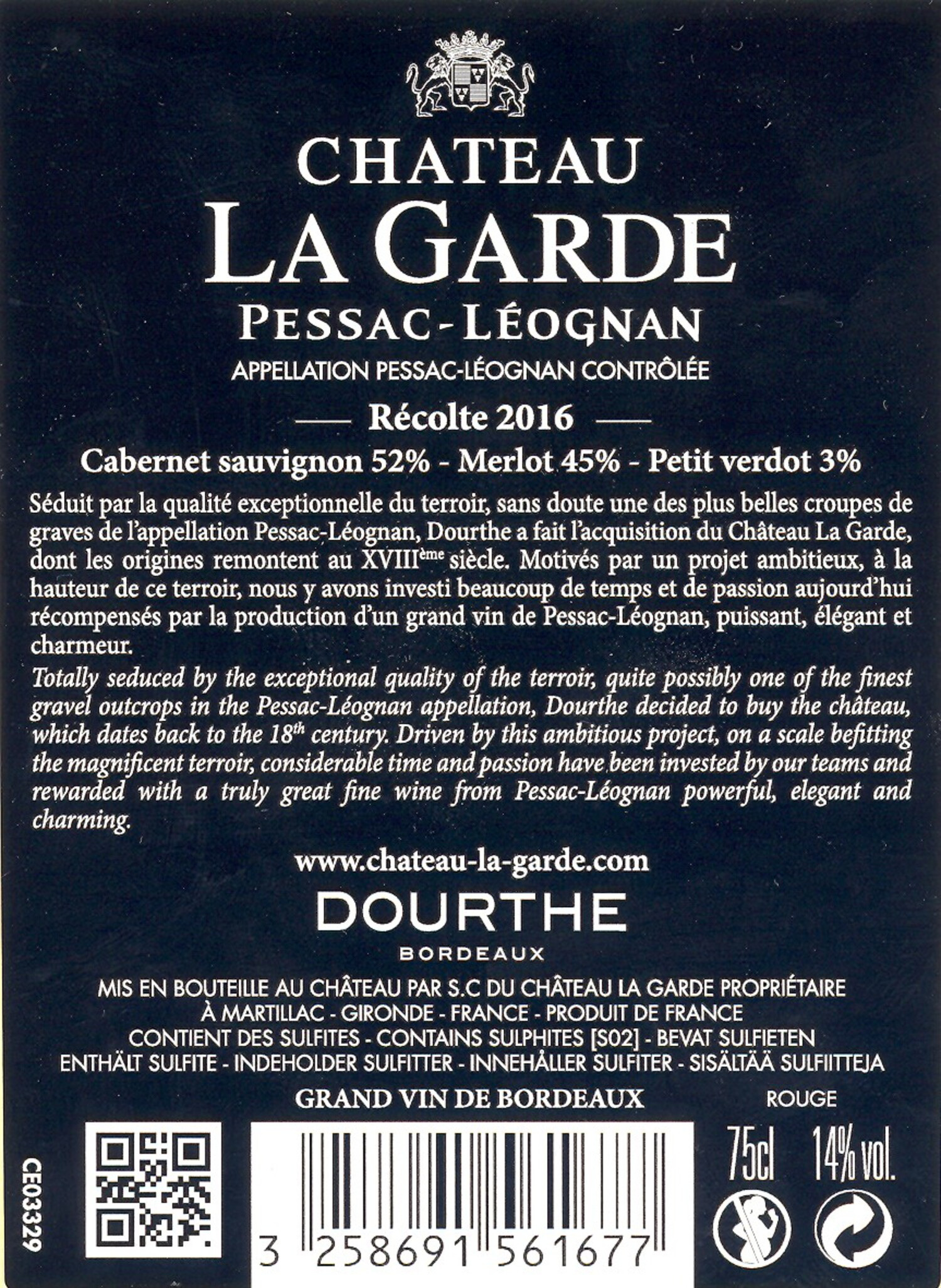 | Libellé | Chateau la garde, 2016 - Pessac-Léognan AOP - Rouge - 75 cl |
