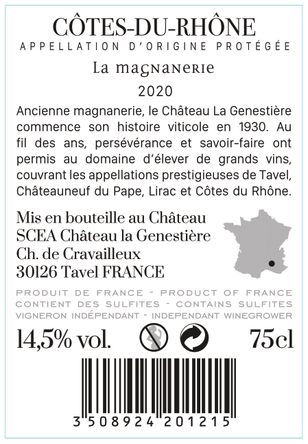 | Libellé | Château La Genestière La Magnanerie, 2020 - Côtes du Rhône AOP - Rouge - 75 cl |