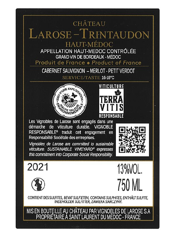 | Libellé | Château Larose Trintaudon, 2021 - Haut-Médoc AOP - Rouge - 75 cl |