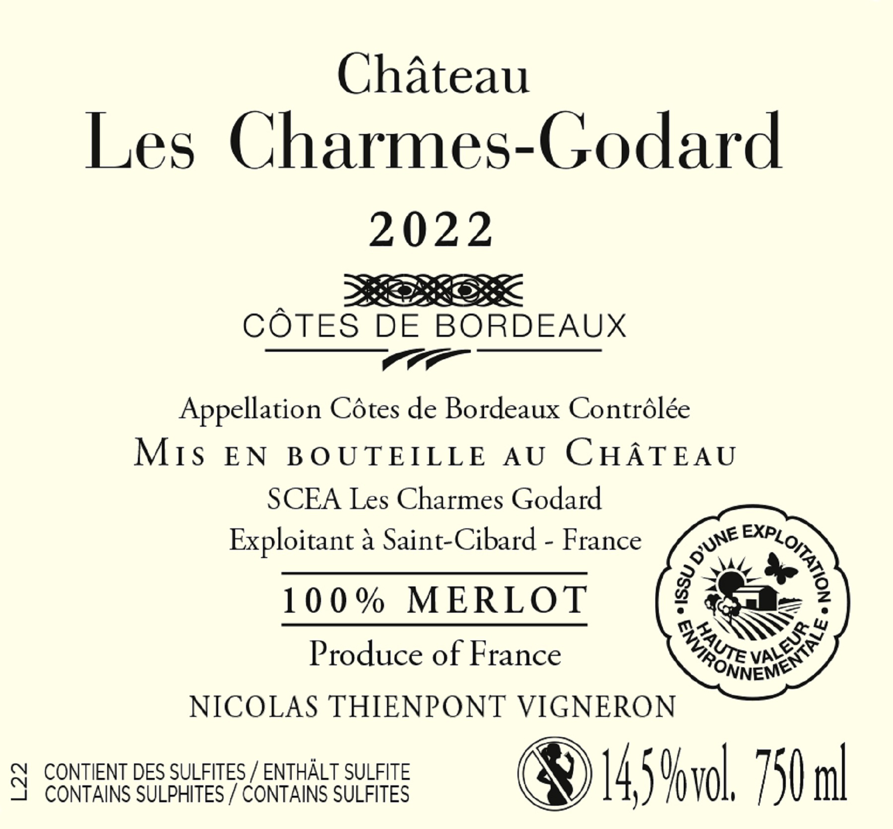 | Libellé | Château Les Charmes Godard, 2022 - Côtes de Bordeaux AOP - Rouge - 75 cl |