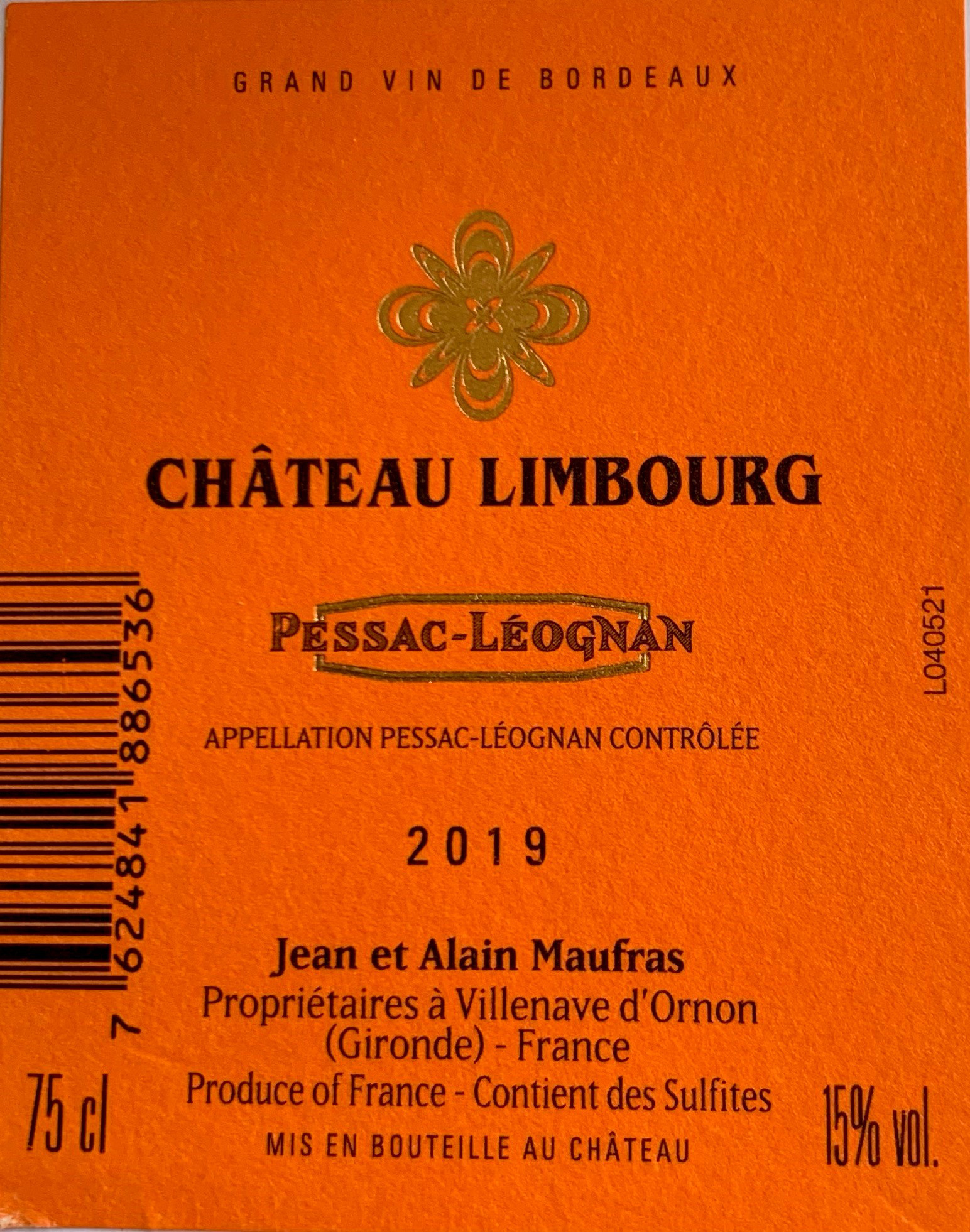 | Libellé | Château Limbourg, 2019 - Pessac-Léognan AOP - Rouge - 75 cl |