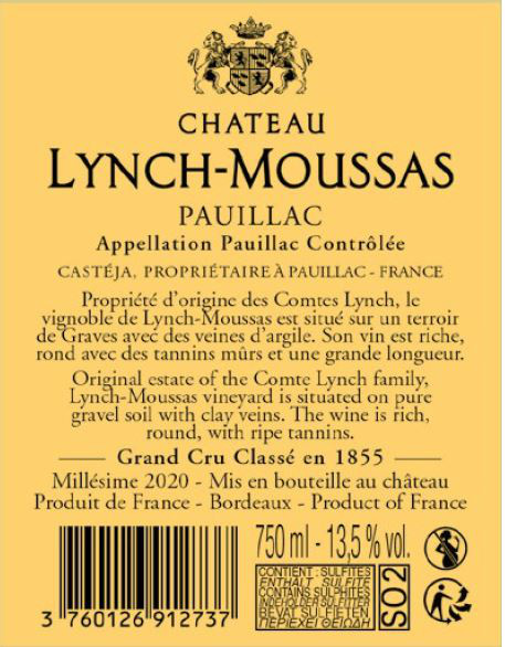 | Libellé | Château Lynch-Moussas, 2020 - Pauillac AOP - Rouge - 75 cl |