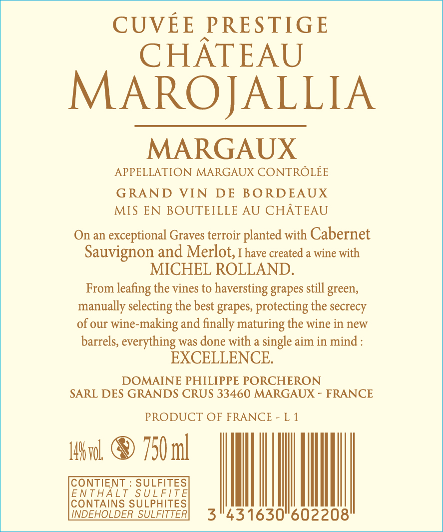 | Libellé | Château Marojallia, 2020 - Margaux AOP - Rouge - 75 cl |