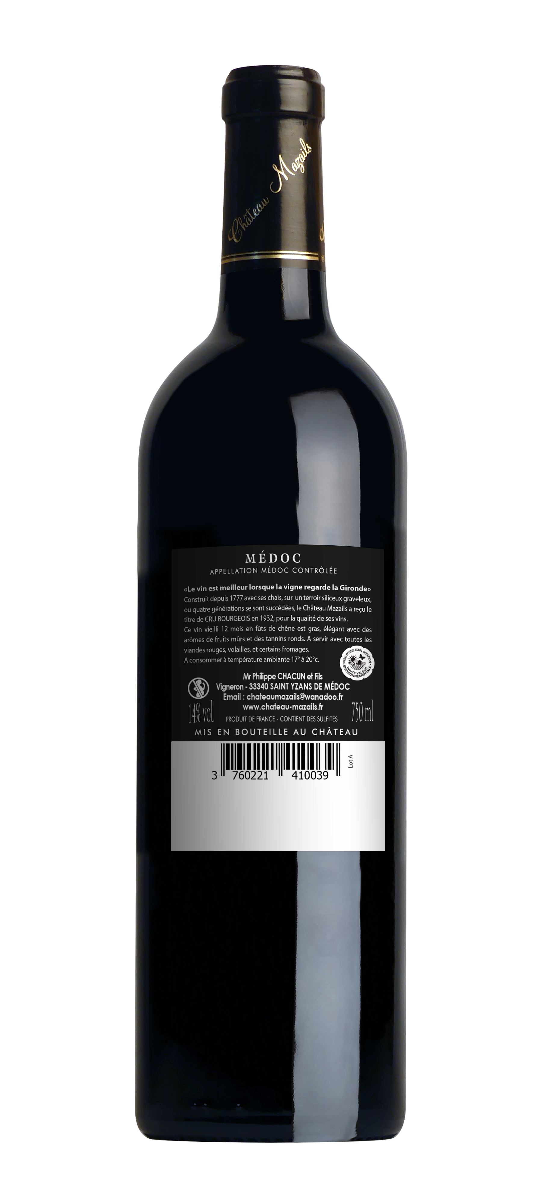 | Libellé | Château Mazails, 2019 - Médoc Cru Bourgeois AOP - Rouge - 75 cl |