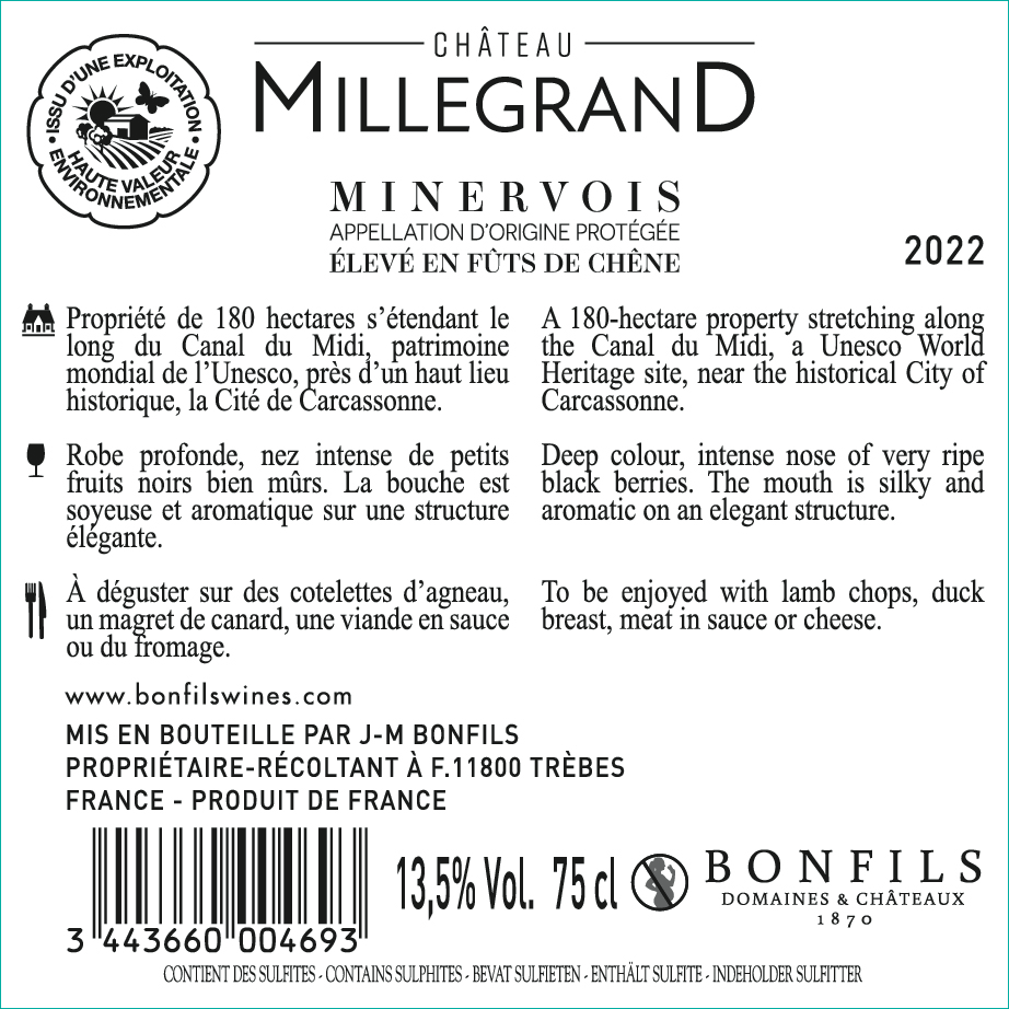 | Libellé | Château Millegrand, 2023 - Minervois AOP - Rouge - 75 cl |