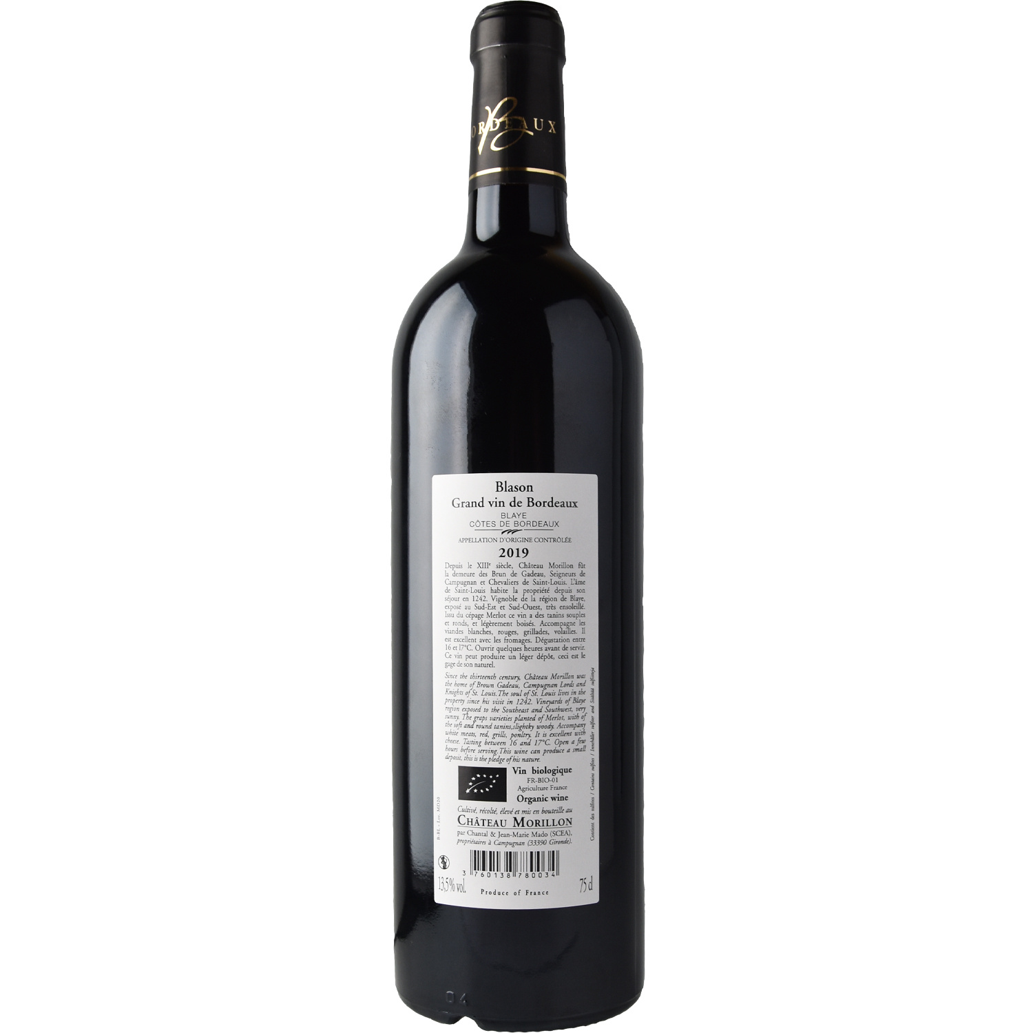 | Libellé | Château Morillon, 2019 - Côtes de Blaye AOP - Rouge - 75 cl |