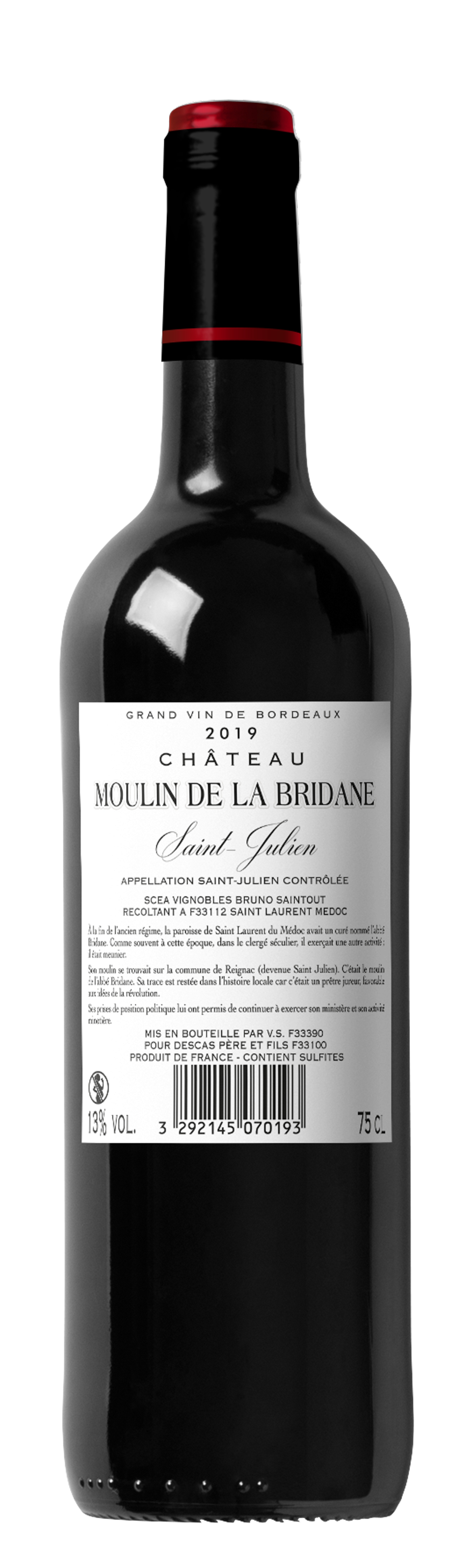| Libellé | Château Moulin de la Bridane, 2019 - Saint-Julien AOC - Rouge - 75 cl |