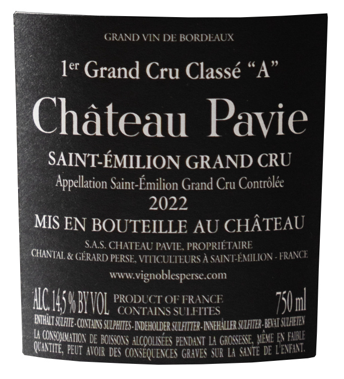 Libellé Château Pavie, 2022 - Saint-Emilion Grand Cru AOP - Rouge - 75 cl