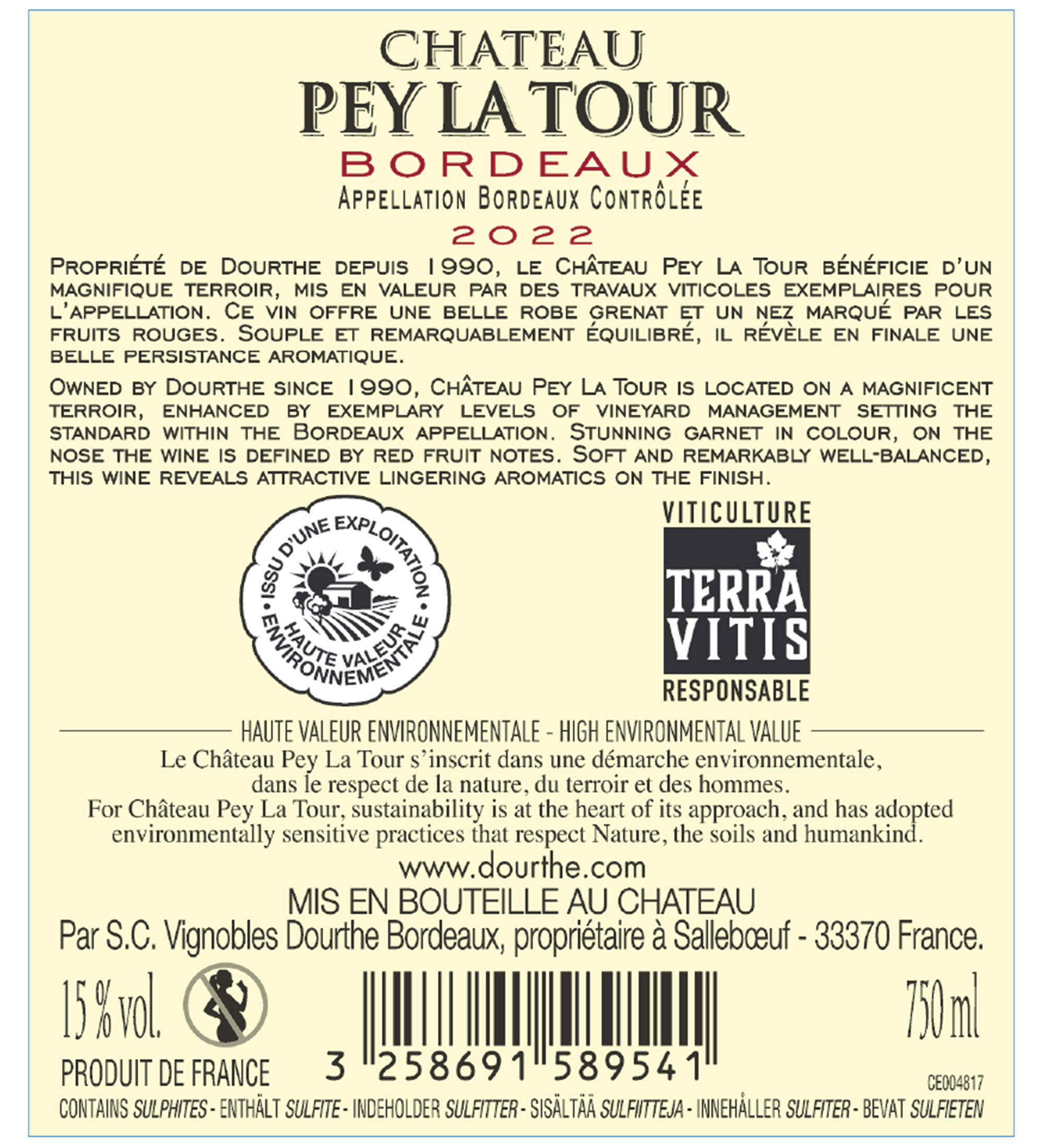 Libellé Château Pey La Tour , 2023 - Bordeaux AOP - Rouge - 75 cl