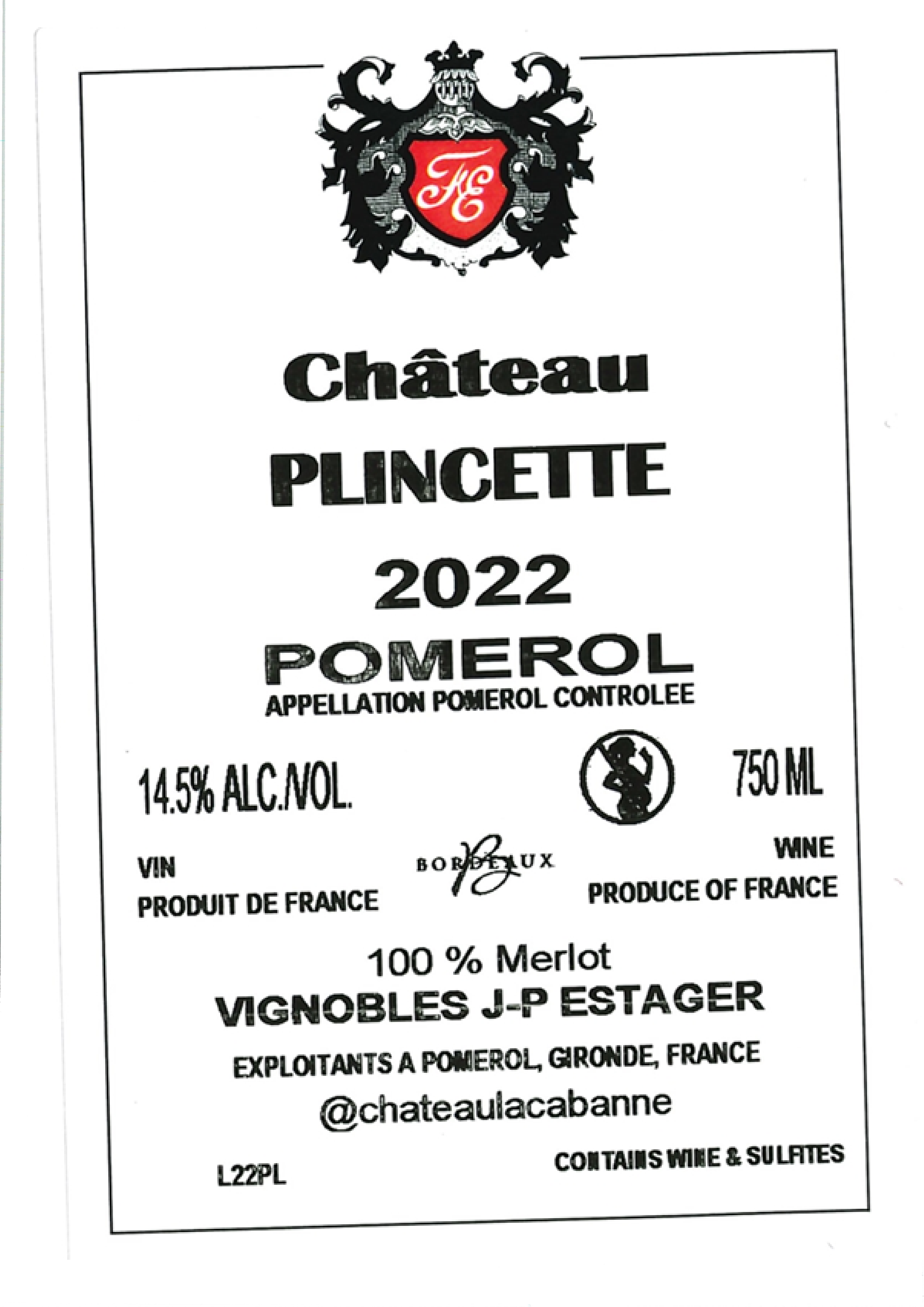 | Libellé | Château Plincette, 2022 - Pomerol AOP - Rouge - 75 cl |