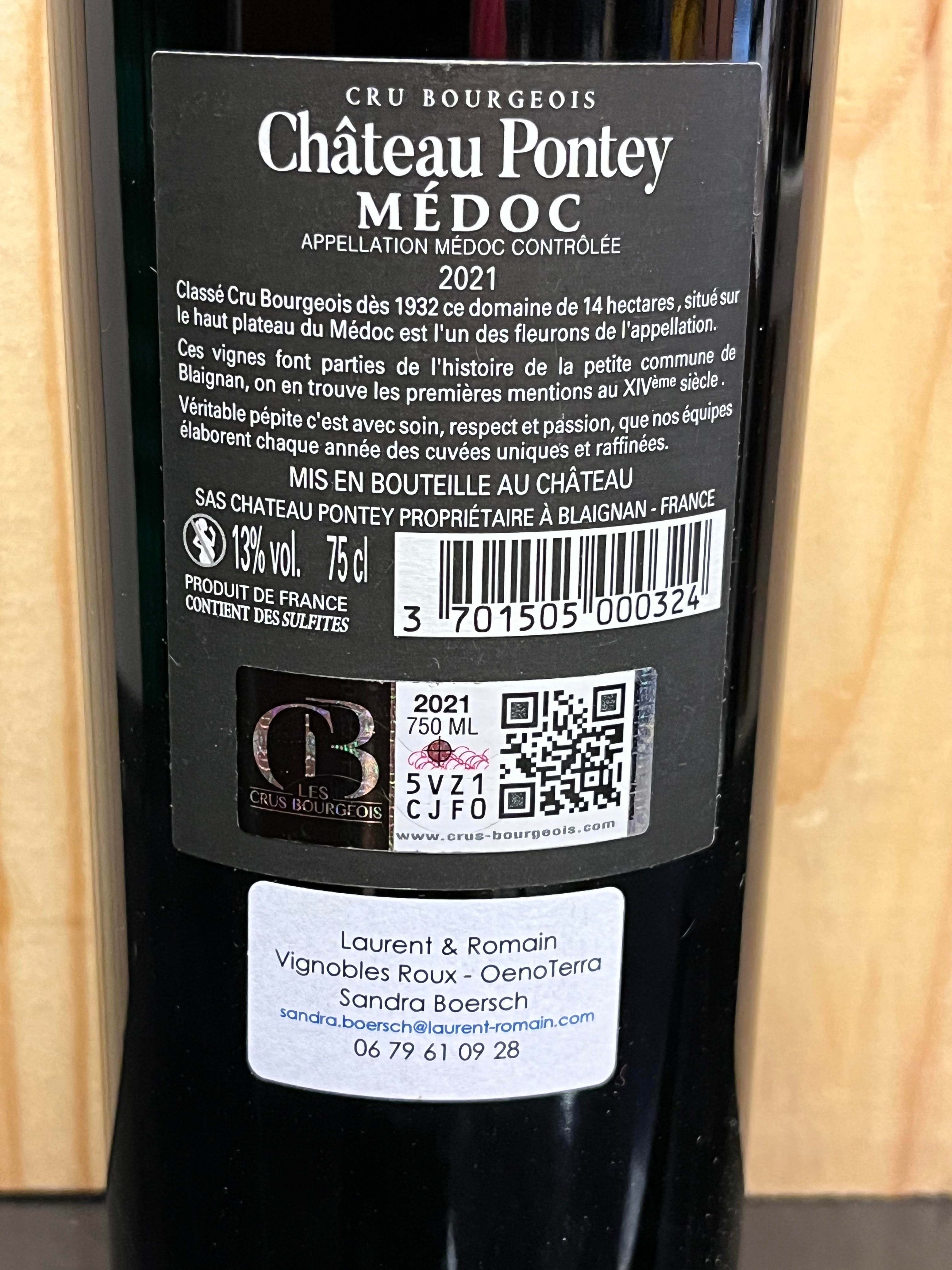 | Libellé | CHATEAU PONTEY, 2021 - Médoc Cru Bourgeois AOP - Rouge - 75 cl |