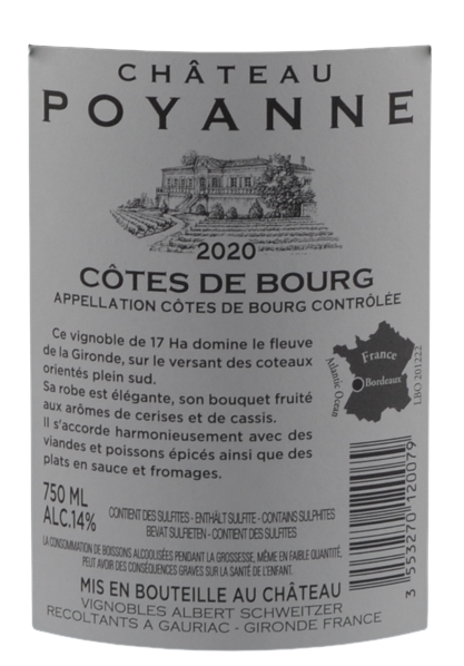 | Libellé | Château Poyanne, 2020 - Côtes de Bourg AOP - Rouge - 75 cl |