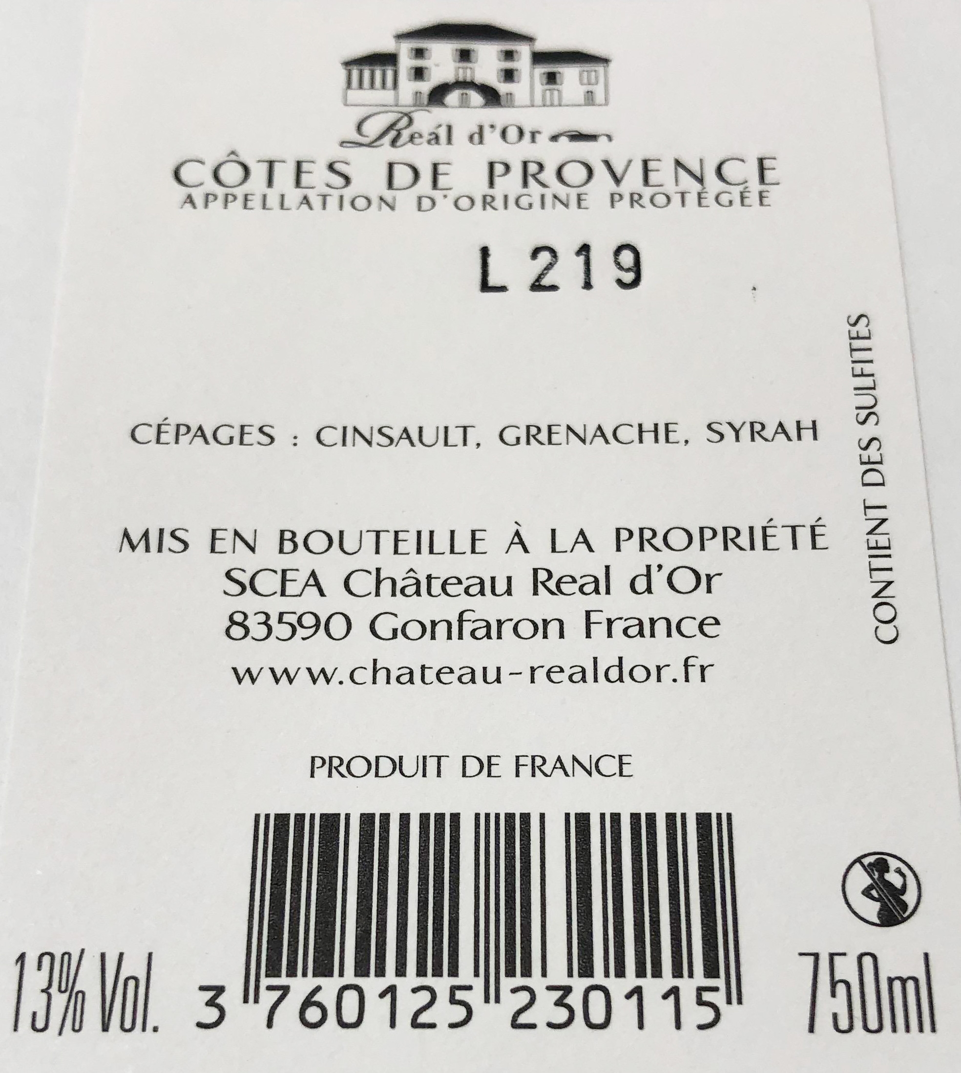| Libellé | Château Réal d'Or, 2020 - Côtes de Provence AOP - Rosé - 75 cl |
