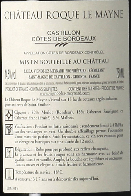 | Libellé | Château Roque Le Mayne, 2020 - Castillon Côtes de Bordeaux AOP - Rouge - 75 cl |