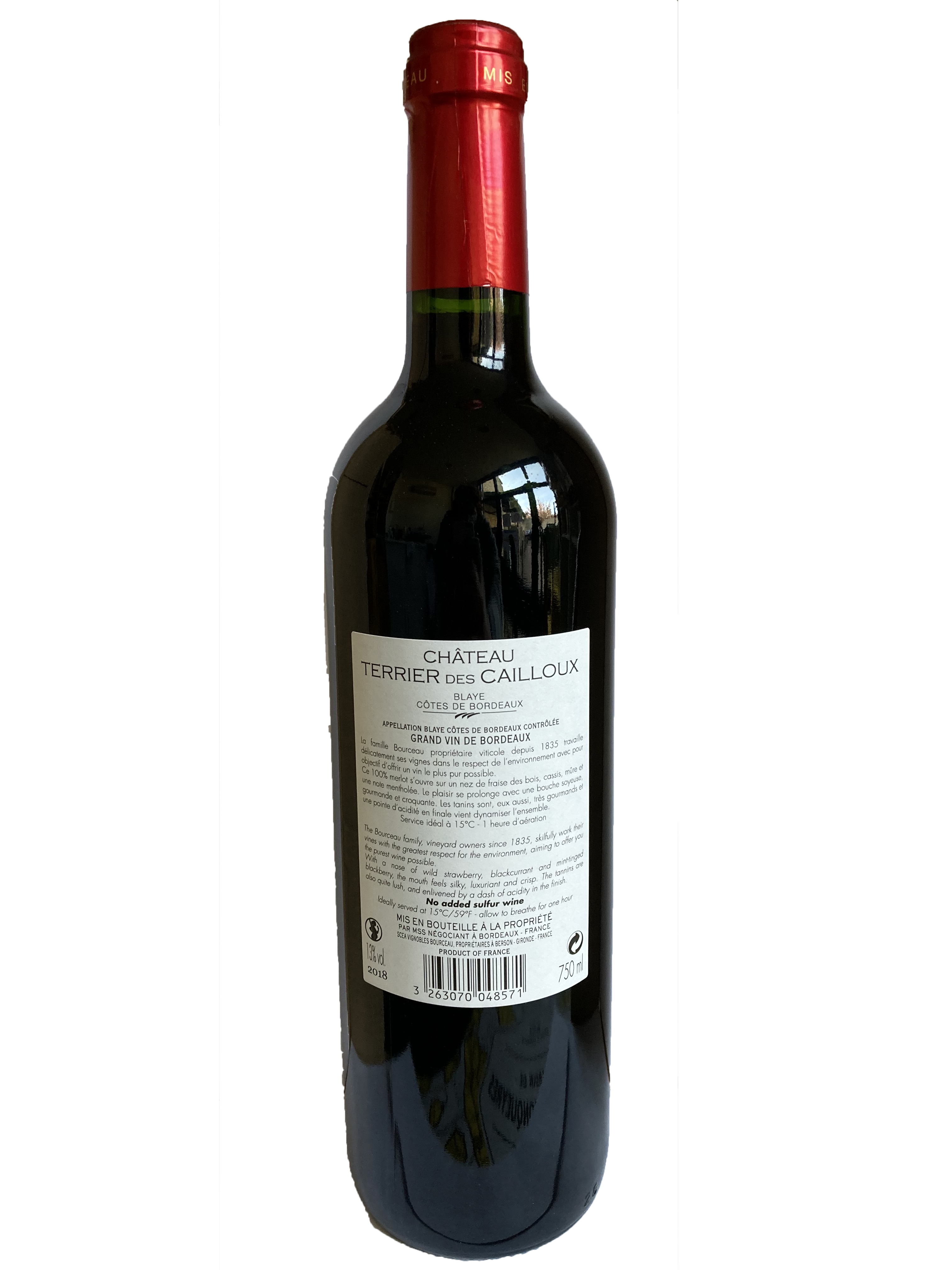 | Libellé | Château Terrier des Cailloux, 2018 - Blaye Côtes de Bordeaux AOP - Rouge - 75 cl |