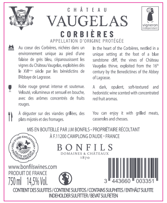 Libellé Château Vaugelas, 2022 - Corbières AOP - Rouge - 75 cl