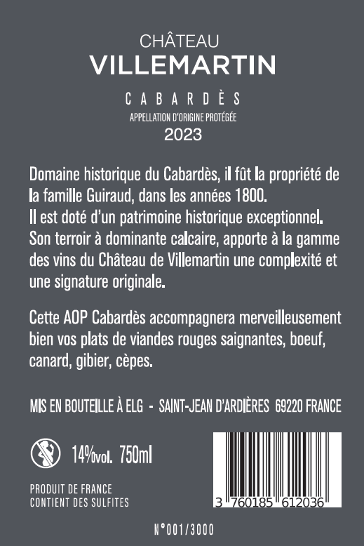 Libellé Château Villemartin, 2023 - Cabardès AOP - Rouge - 75 cl