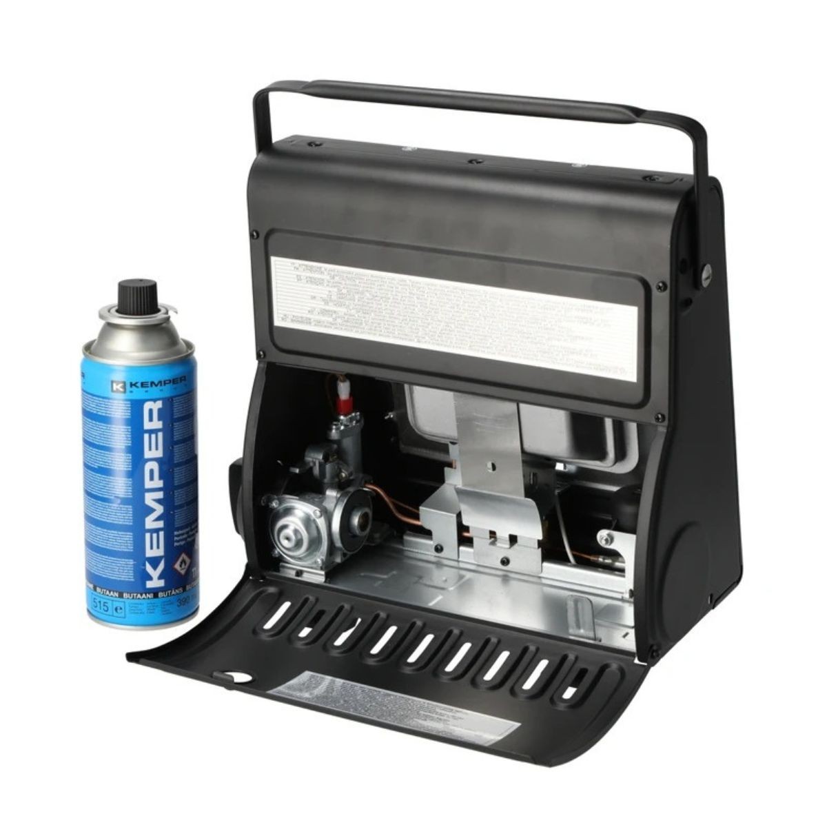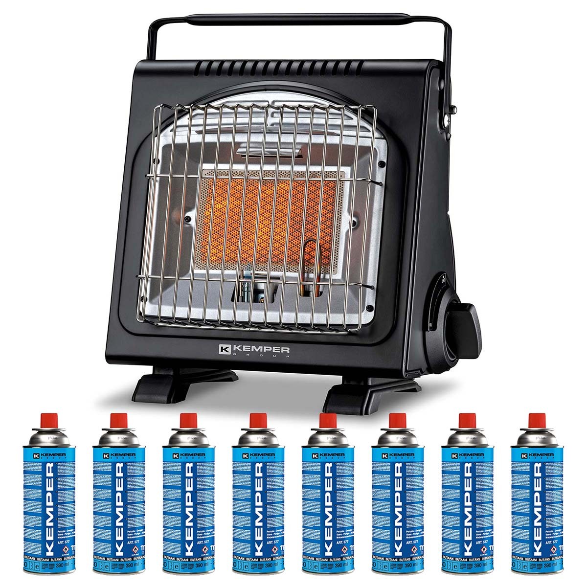 Libellé Chauffage à gaz portable Piezo 1700W Systèmes Sécurité intégrés + 8 Cartouches de gaz Butane Autonomie 2h30 KEMPER