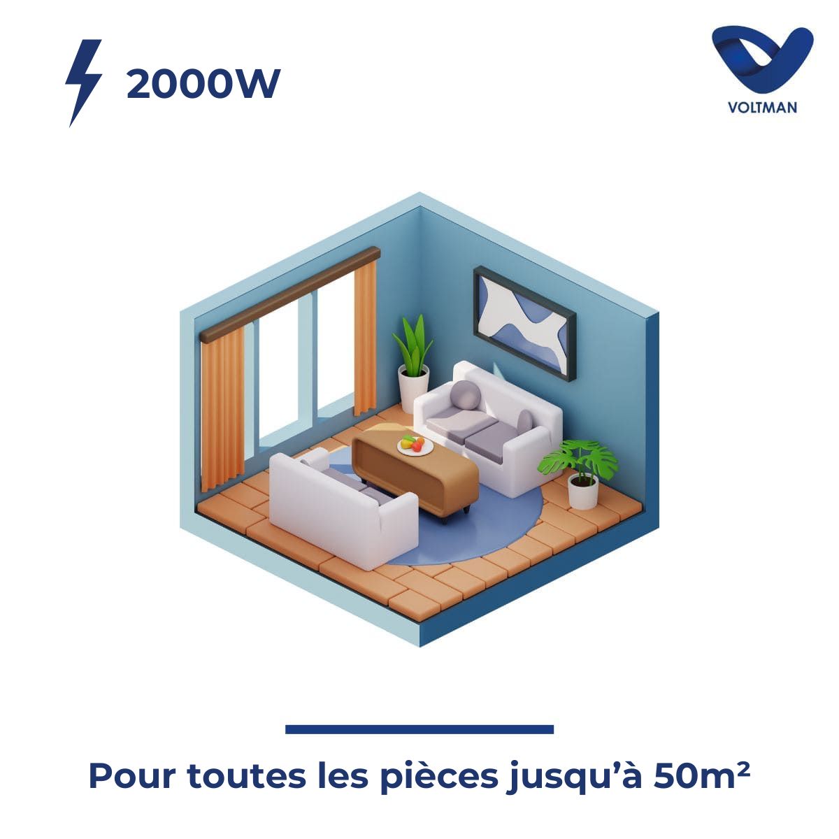 Caractéristiques du chauffage connecté inertie sèche 750 à 2000W - Voltman :