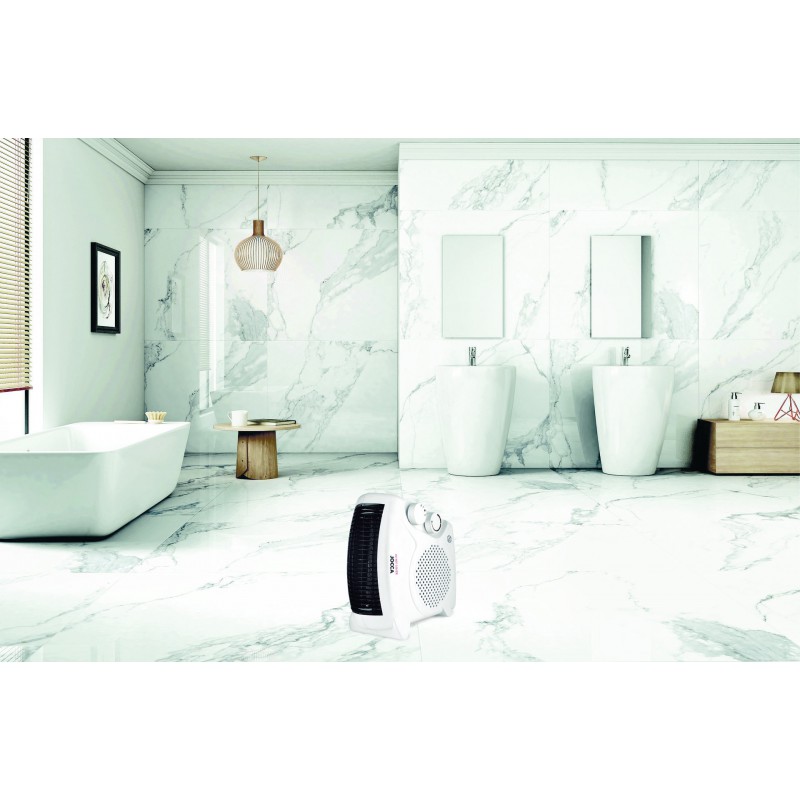 Il est équipé d'un thermostat réglable, d'un régulateur de température à plusieurs positions, 2 positions pour la chaleur et 1 position pour le froid en mode ventilateur. Disponible en blanc, il est muni d'une poignée pour une manipulation plus facile.