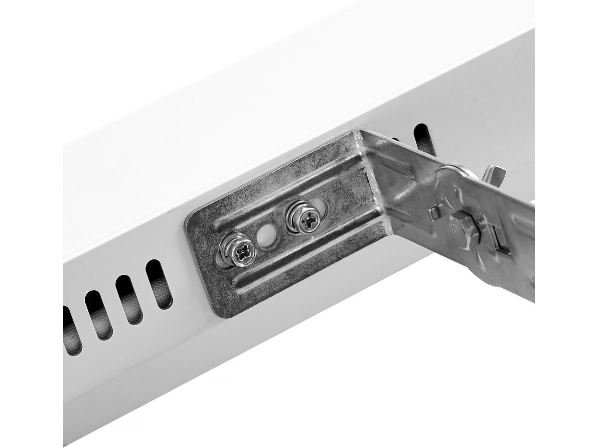 Conseils d'utilisation: Un support de montage mural et plafond est fourni avec l'appareil de chauffage qui a été spécialement conçu pour permettre à ce produit d'être fixé à un plafond ou un mur avant de percer les supports vérifier que le plafond soit solide et qu'il n'y ait pas de conduites d'eau ou de fils électriques cachés. L'appareil de chauffage installer au plafond doit être installé à au moins 2,4 m du sol.ATTENTION ! L'appareil doit être installé sur des surfaces solides comme le béton, le bois ou le métal, etc. Important : Assurez-vous que les câbles d'alimentation sont bien montés et qu'ils n'entrent pas en contact avec le réflecteur de l'appareil de chauffage ou qu'ils ne traînent pas dans la zone chauffée, le câble d'alimentation peut être fixé au support de montage métallique
