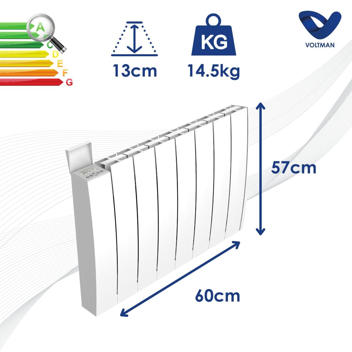 Caractéristiques du radiateur électrique fixe 1000W céramique - inertie sèche - Voltman :