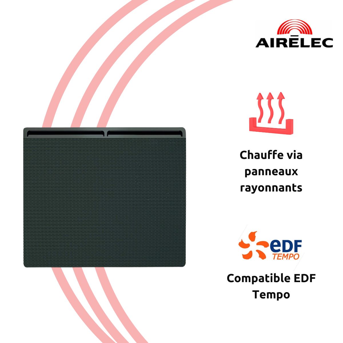 Caractéristiques du radiateur électrique 1000W panneaux rayonnants - gris - Airelec :