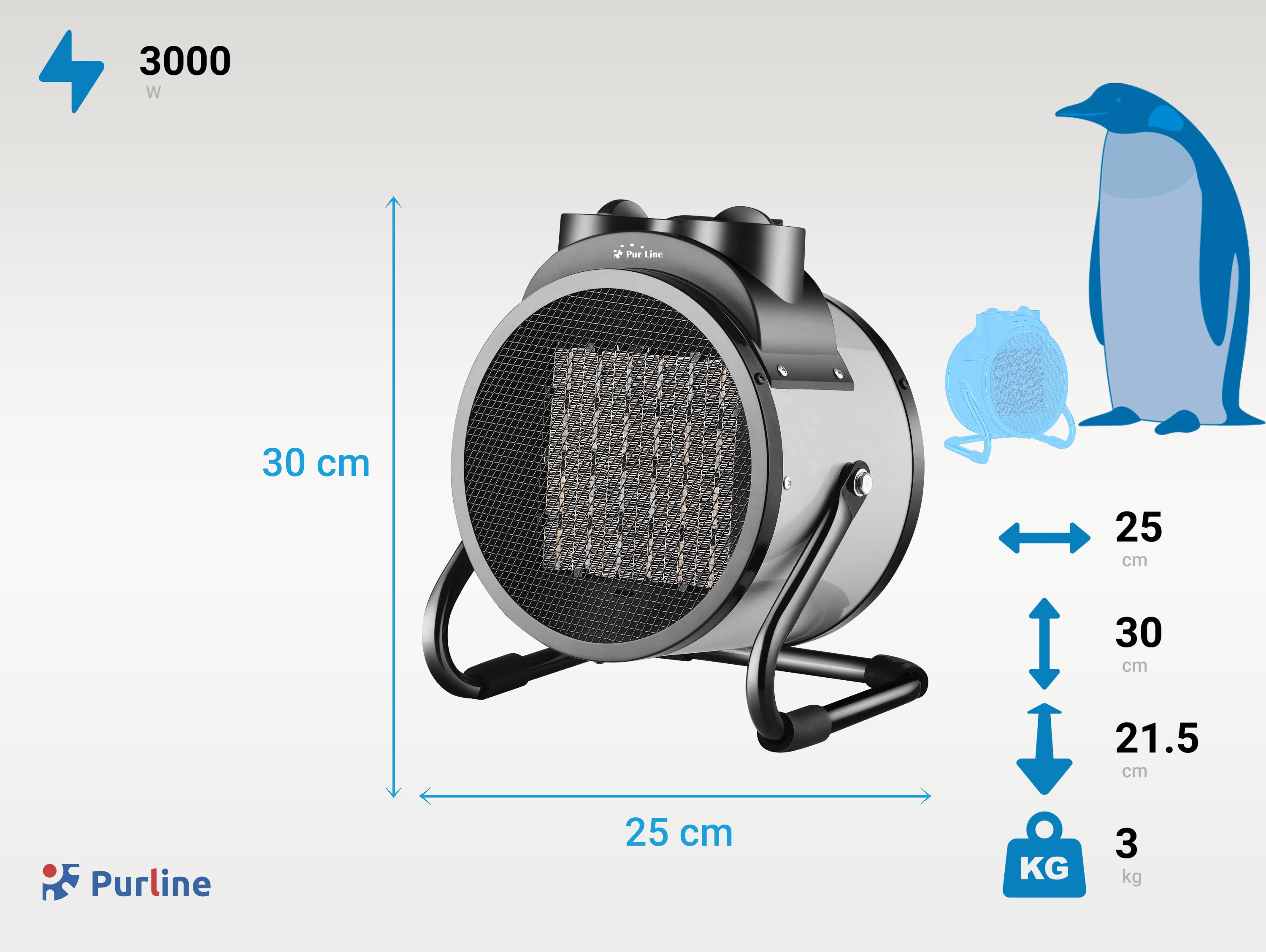 Le modèle HOTI F est un chauffage industriel puissant équipé d'un thermostat avec 3 modes de puissance.