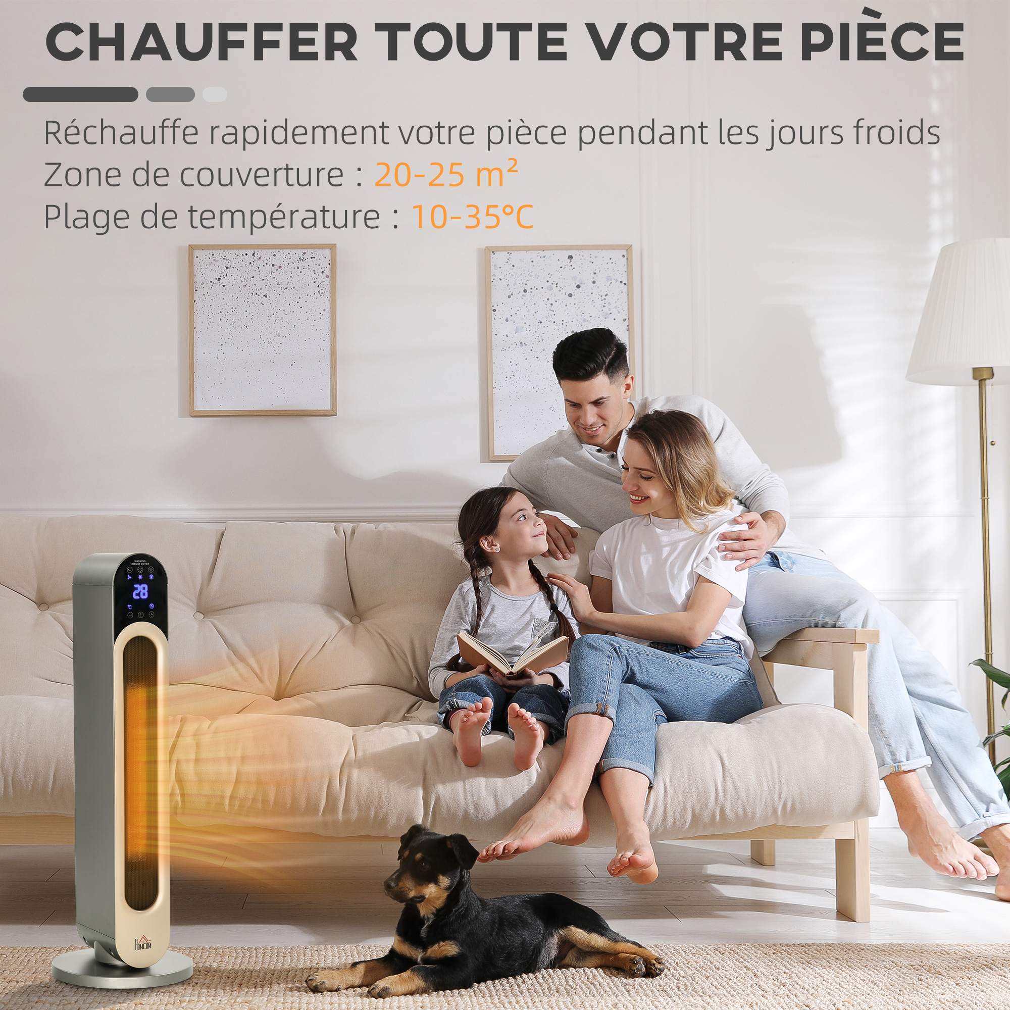 - 3 modes de chauffage réglables (ventilateur/faible/élevé) et température (10-35°C) pour maintenir une atmosphère agréable partout