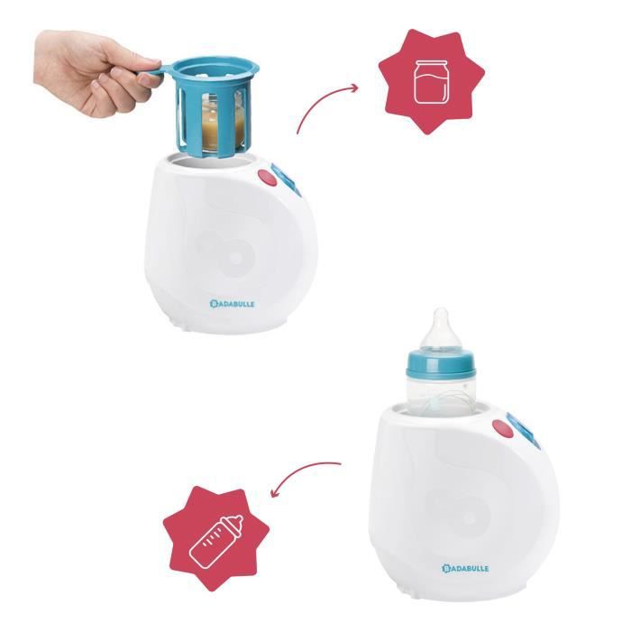 • Chauffage à la maison ou en voiture (adaptateur allume-cigare fourni) • Dosette avec graduation selon le contenu du biberon (eau froide ou eau à température ambiante) • Pratique : 1 seul bouton unique • Temps de chauffe ultra rapide <90 secondes • Universel : chauffe tous les biberons (cols standards ou cols larges) et petits pots • Arrêt automatique • Garantie à vie - modalités et conditions sur www.badabulle.com "