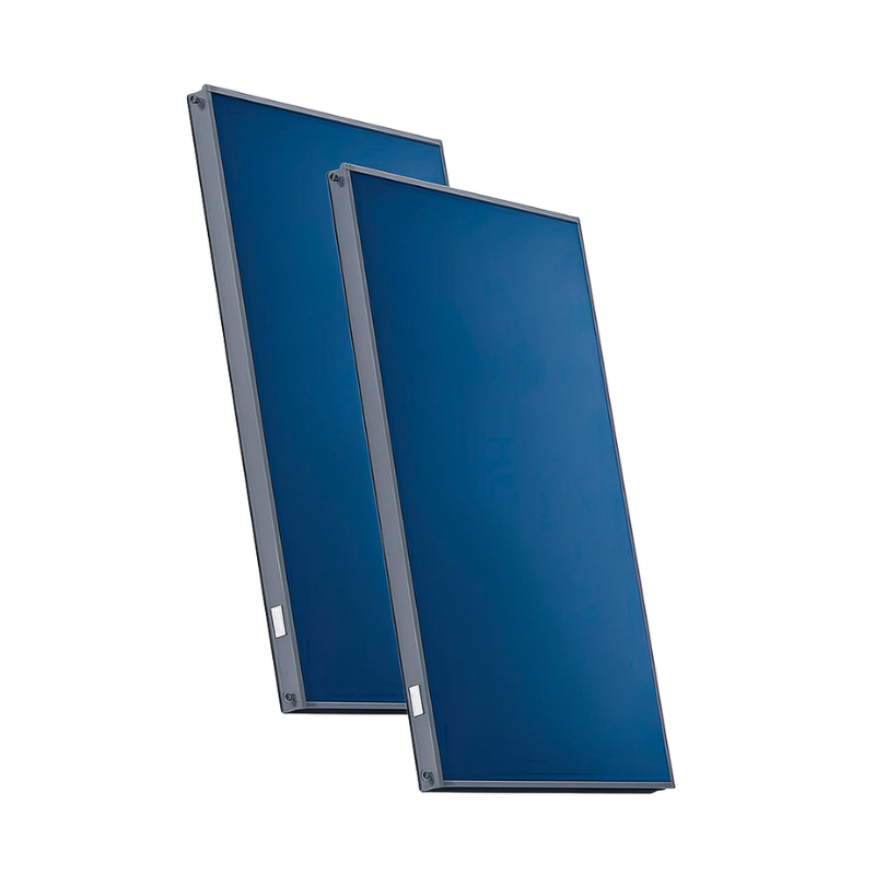 Capteur solaire plan (2,43 m2) à haut rendement, dont le cadre extérieur robuste est en aluminium traité avec des additifs spéciaux pour le protéger de la corrosion. La boucle interne en cuivre en harpe unique est composée de 2 tuyauteries horizontales de distribution et de 12 tuyauteries verticales soudées par ultrasons, garantissant le plus haut échange thermique et des pertes de charge réduites. Elle permet la réalisation de rangées de 6 capteurs au maximum et la réduction de la consommation du circulateur de l’installation, ce qui va de pair avec une économie d’énergie