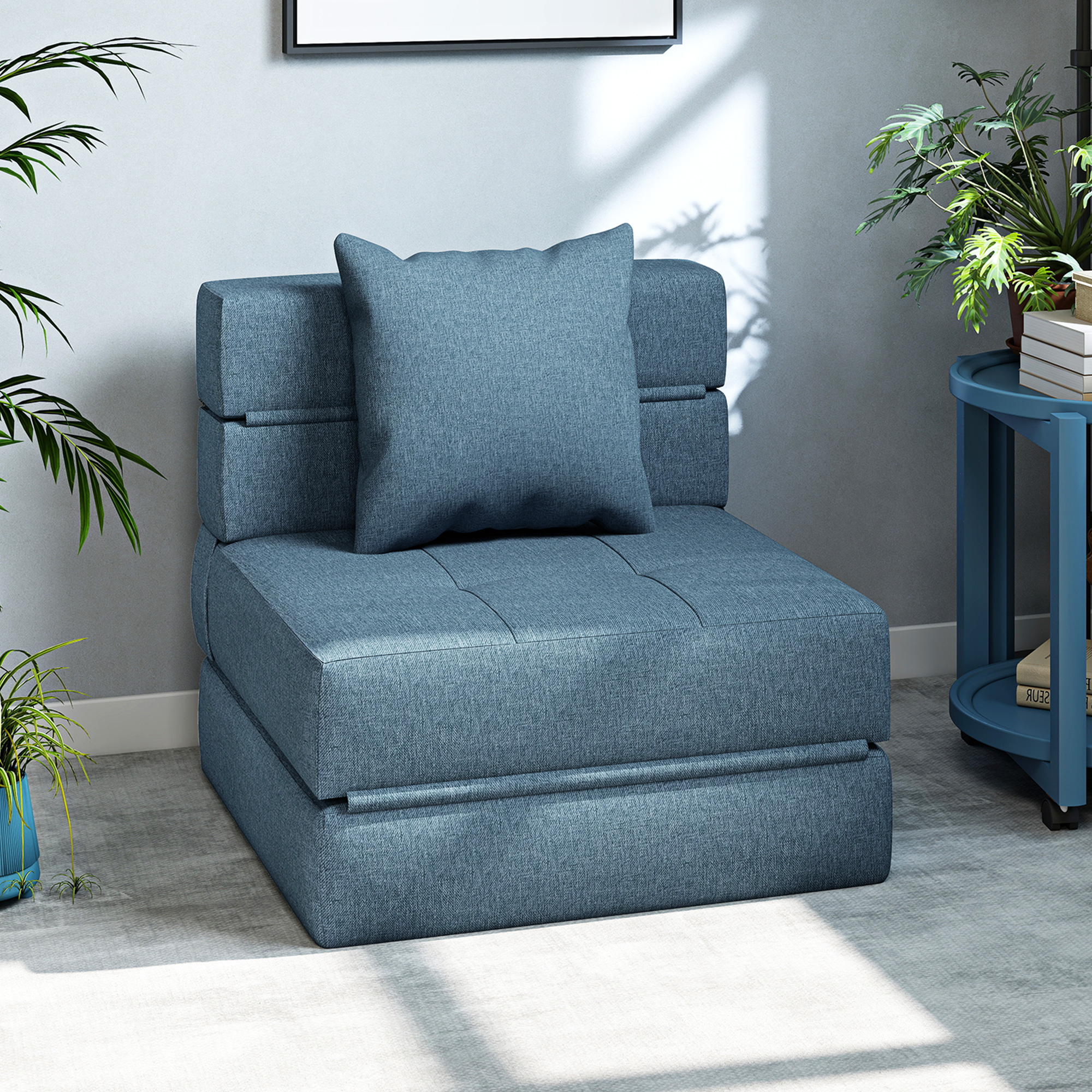 Chauffeuse canapé-lit convertible 1 place - coussin déhoussable inclus - tissu bleu