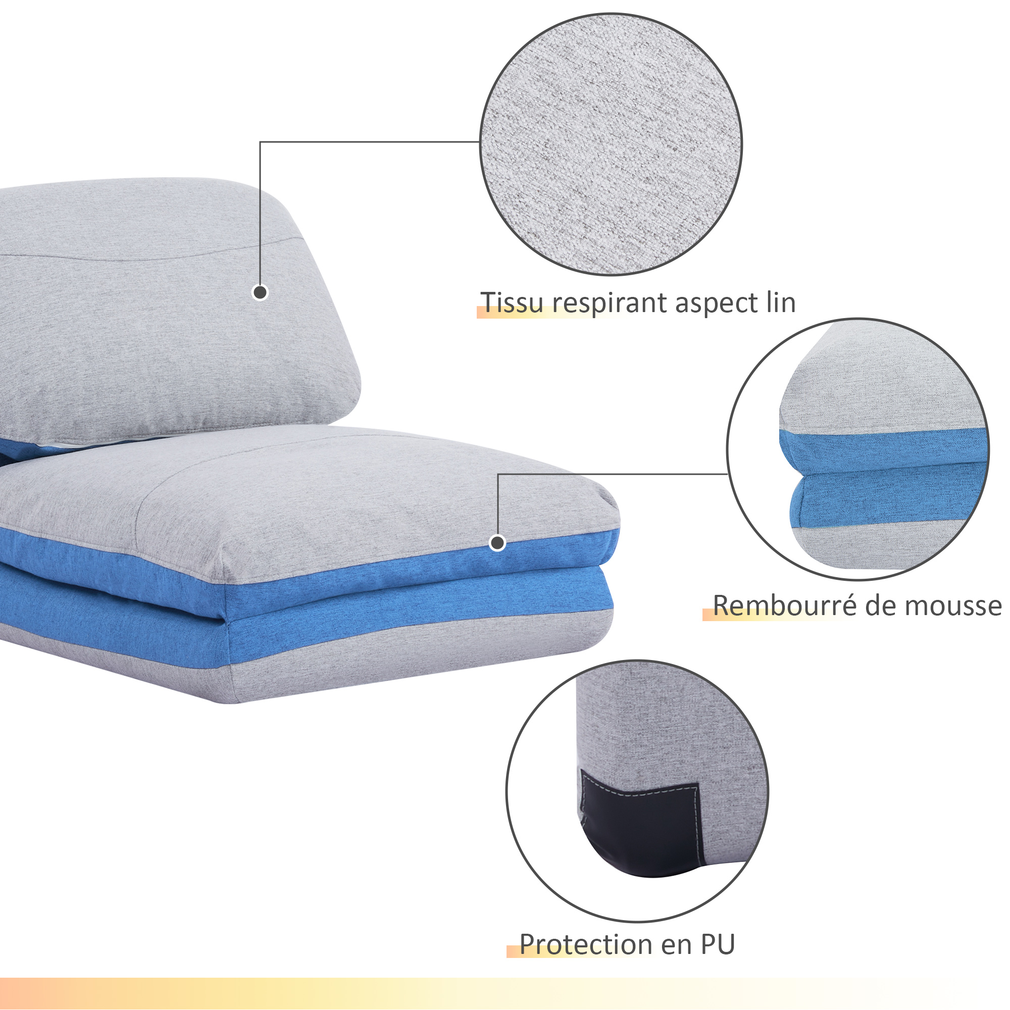 | Libellé | Chauffeuse - matelas d'appoint pliant - fauteuil convertible - inclinaison dossier réglable 5 positions - tissu polyester aspect lin gris clair bleu |