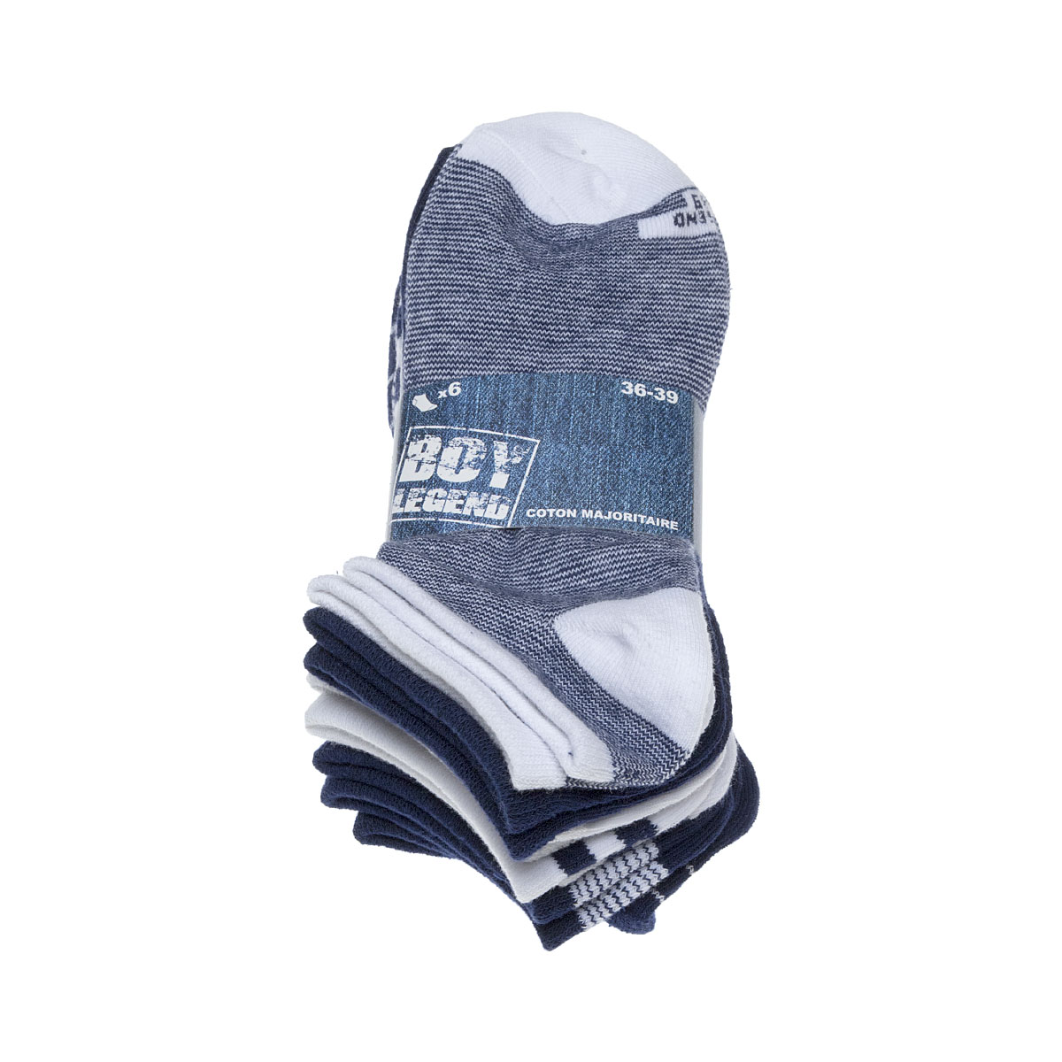 | Libellé | Chaussette mini-chaussettes - lot de 6 - sans bouclette - rayures - fine - coton - multicolore - boy legend |