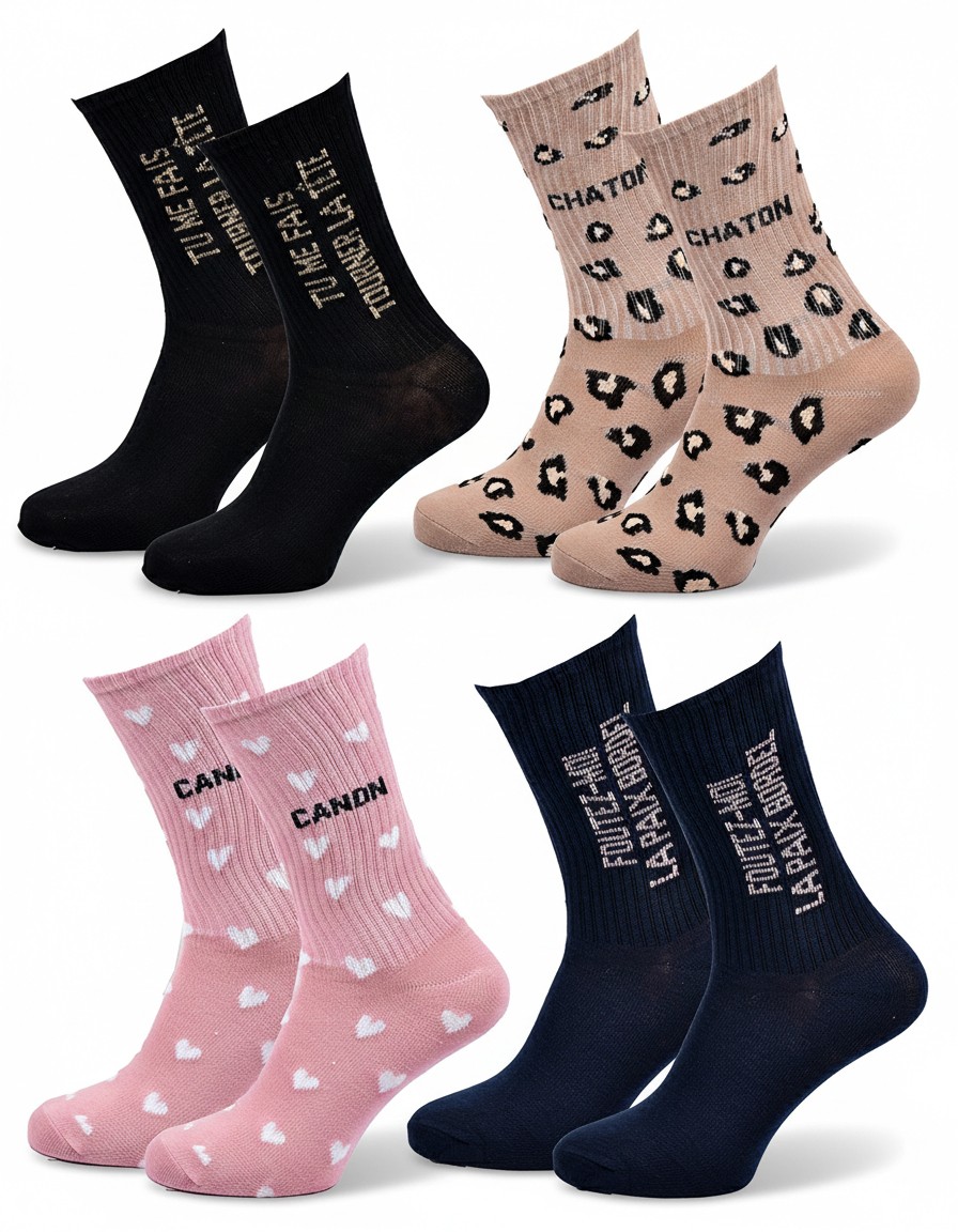 | Libellé | Chaussettes à paillettes Femme Message Humoristique Pack de 4 Paires |