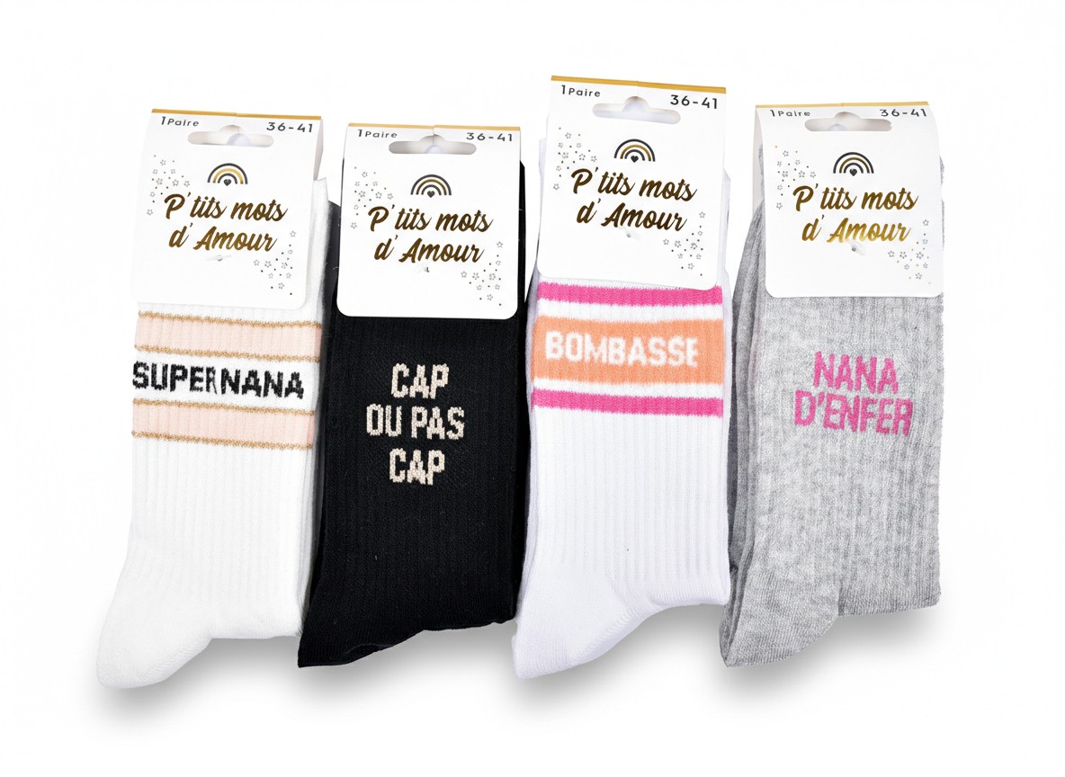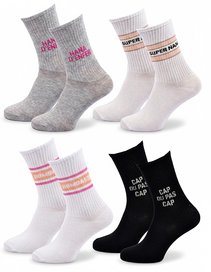 | Libellé | Chaussettes à paillettes Femme Message Humoristique Pack de 4 Paires |