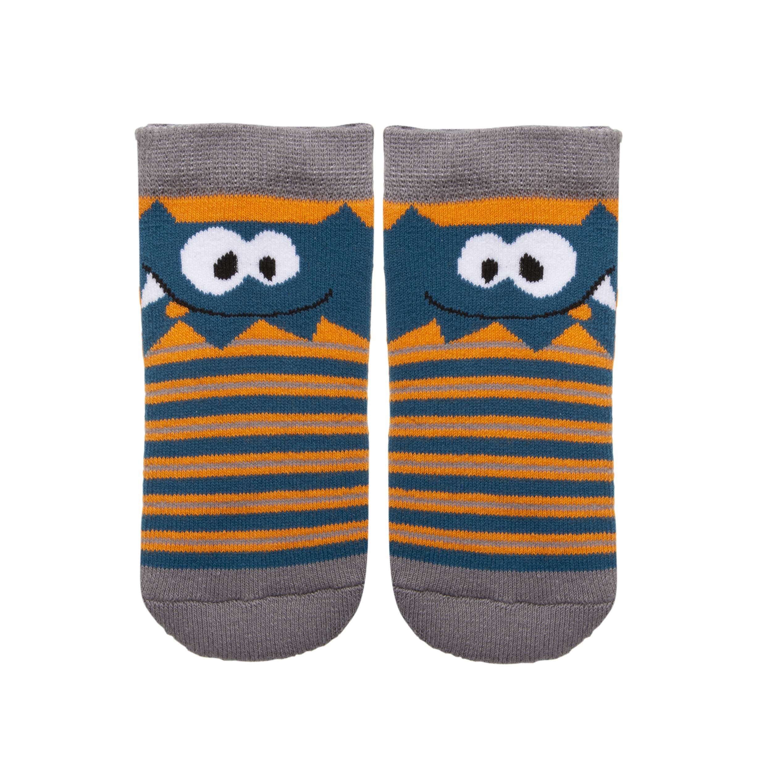Votre enfant va adorer ces chaussettes avec leurs rayures et leur motif monstre. Ces chaussettes bleues et orange sont douces et très agréables grâce à leur coton Lycra®. Ces chaussettes sont aussi antidérapantes pour la plus grande sécurité de votre enfant ! Lavables en machine à 30°C.