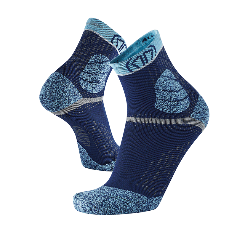 Chaussette de Trail Running avec des zones de protection de la cheville et des orteils pour garantir le confort du coureur dans les chemins. La bande de grip est destinée à améliorer le contact avec les semelles. Elle est composée d'une zone d'aération au niveau de la voûte plantaire et d'une zone de maintien de la cheville pour améliorer la stabilité de la cheville par rapport au talon tout en limitant les blessures, renforçant ainsi le rôle de la semelle. Les fibres utilisent la technologie Skinlife pour la gestion des odeurs.