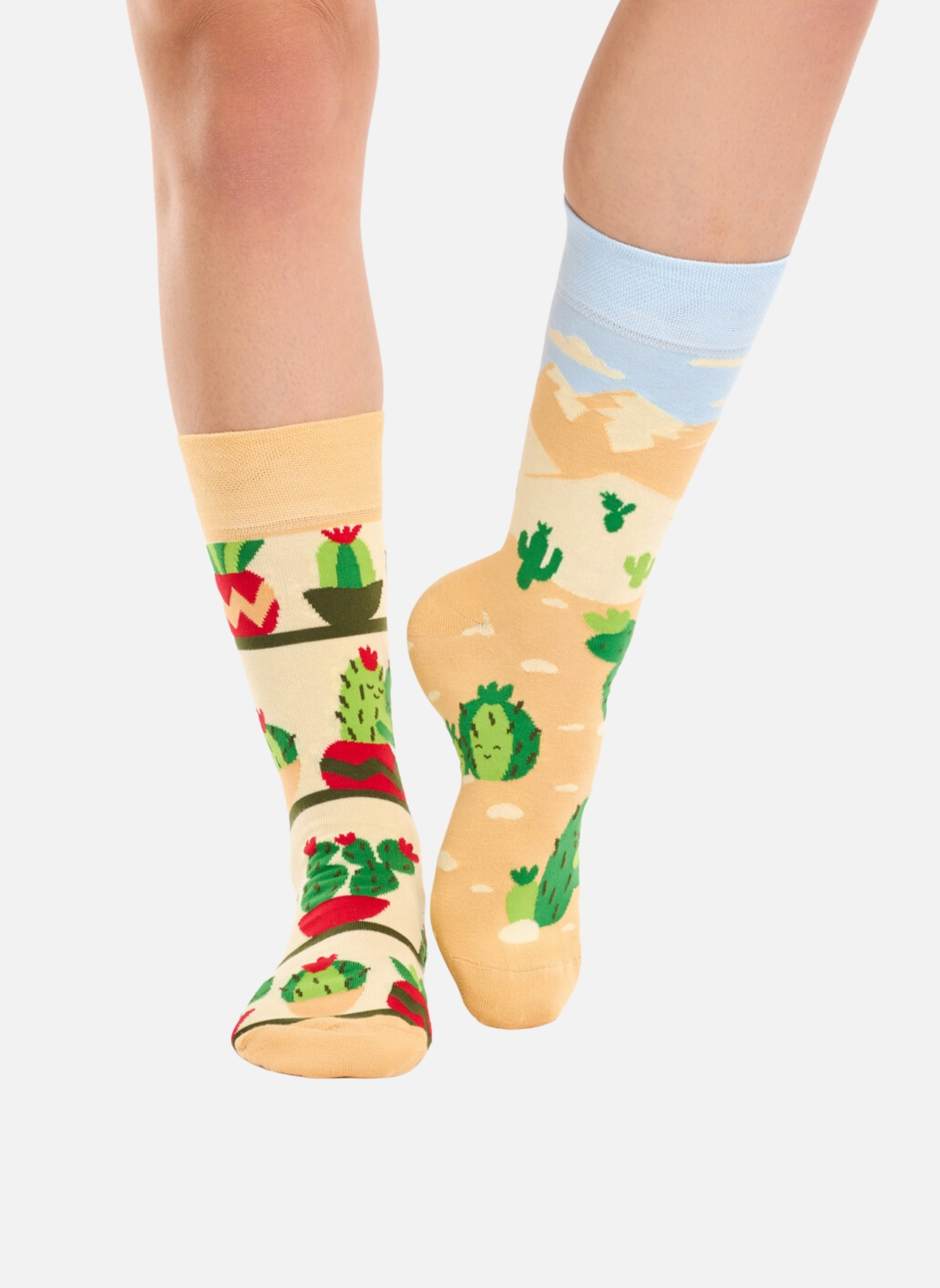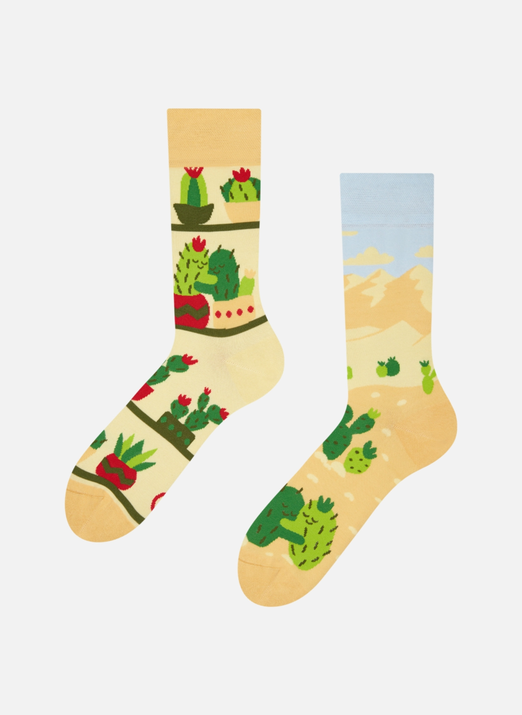 La chanson dit bien que le monde entier est un cactus. Il en fallait donc bien quelques uns sur des chaussettes originales et dépareillées aux couleurs chaudes du Mexique.
