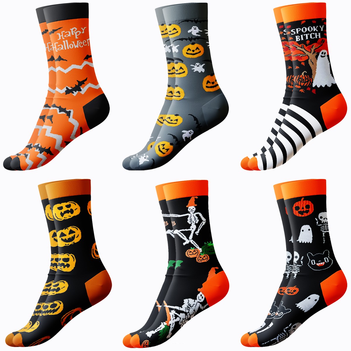 Chaussettes fantaisie unisexes en coton taille unique 37-44 Halloween - Lot de 12