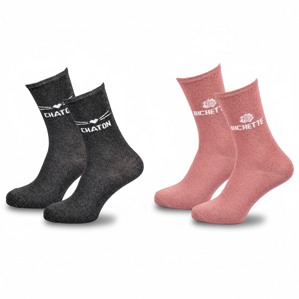 | Libellé | Chaussettes Femme Paillettes Message Humoristique Pack de 2 Paires |