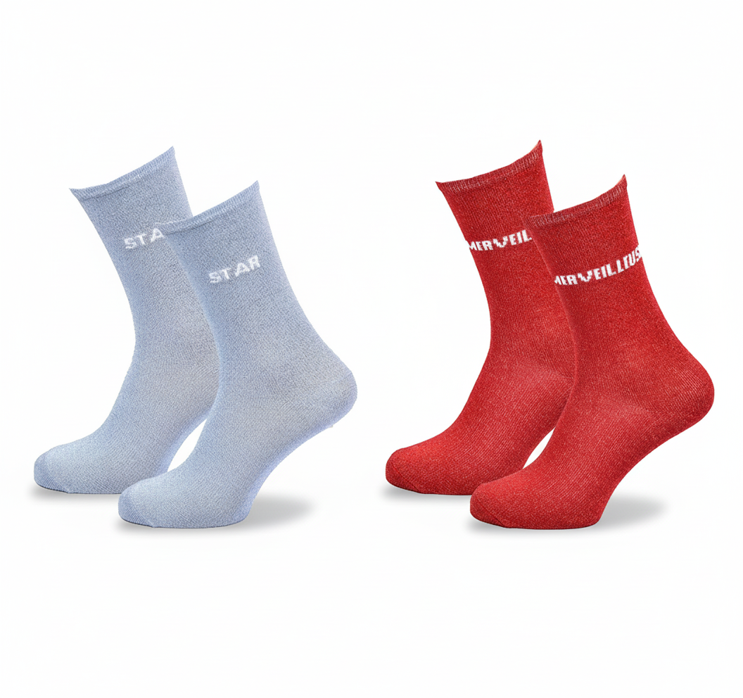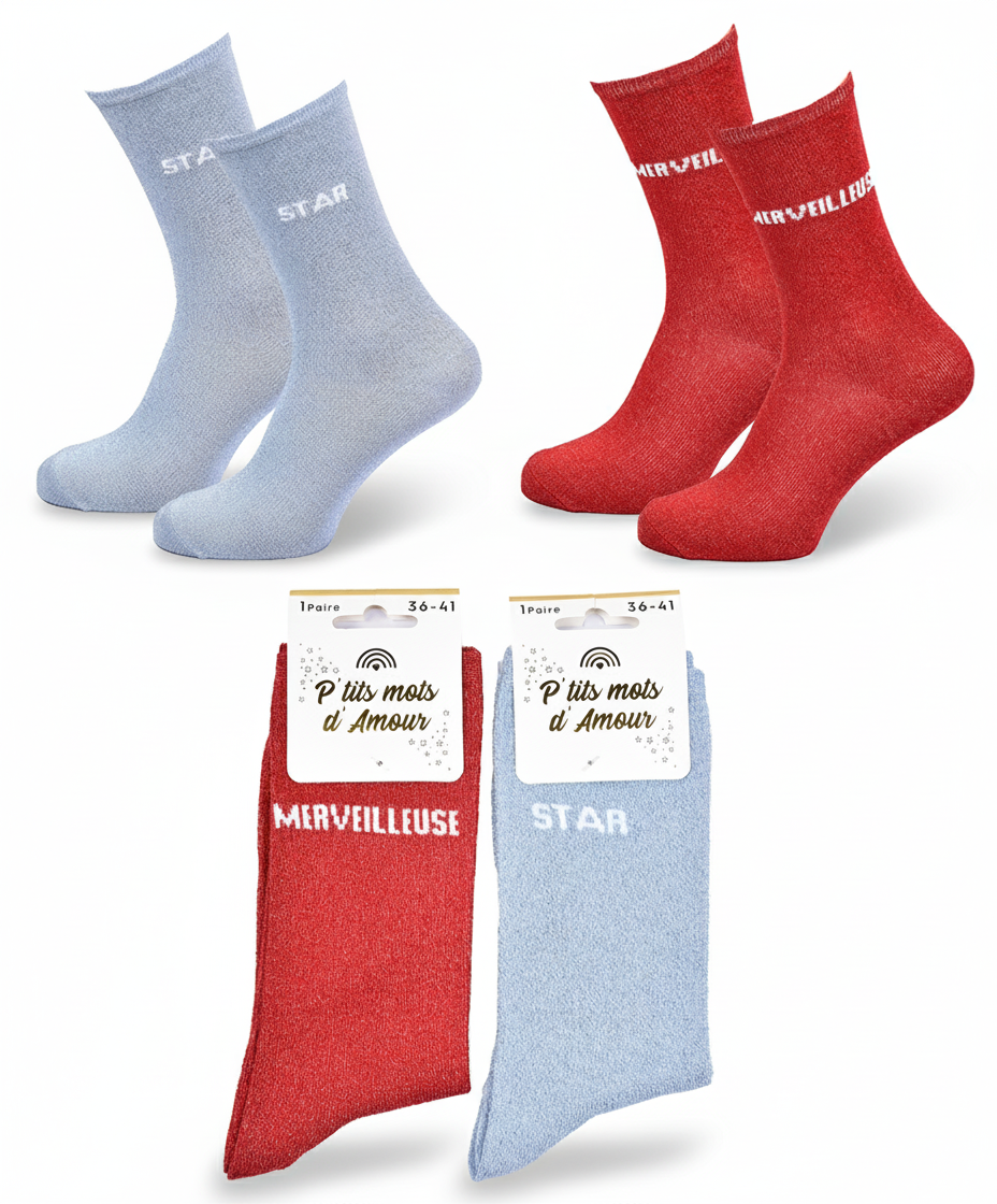 | Libellé | Chaussettes Femme Paillettes Message Humoristique Pack de 2 Paires |
