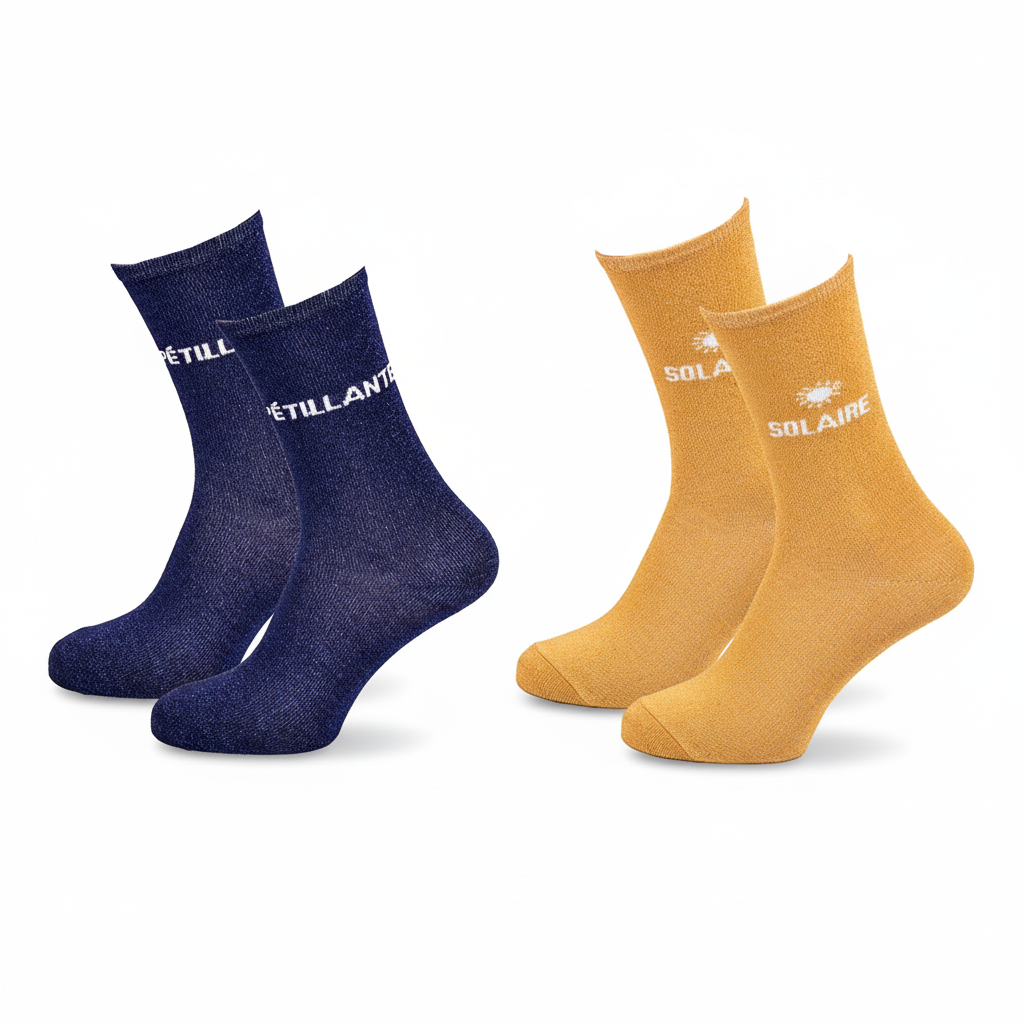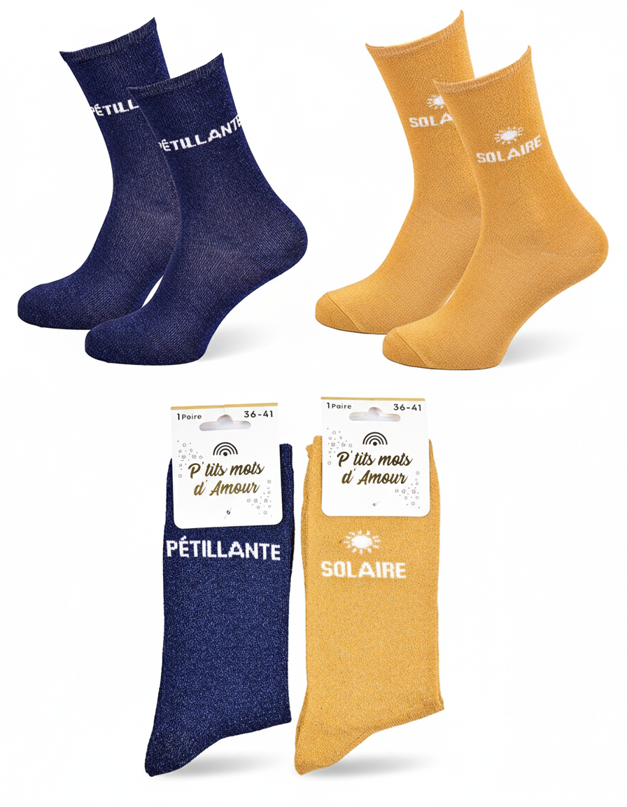 | Libellé | Chaussettes Femme Paillettes Message Humoristique Pack de 2 Paires |