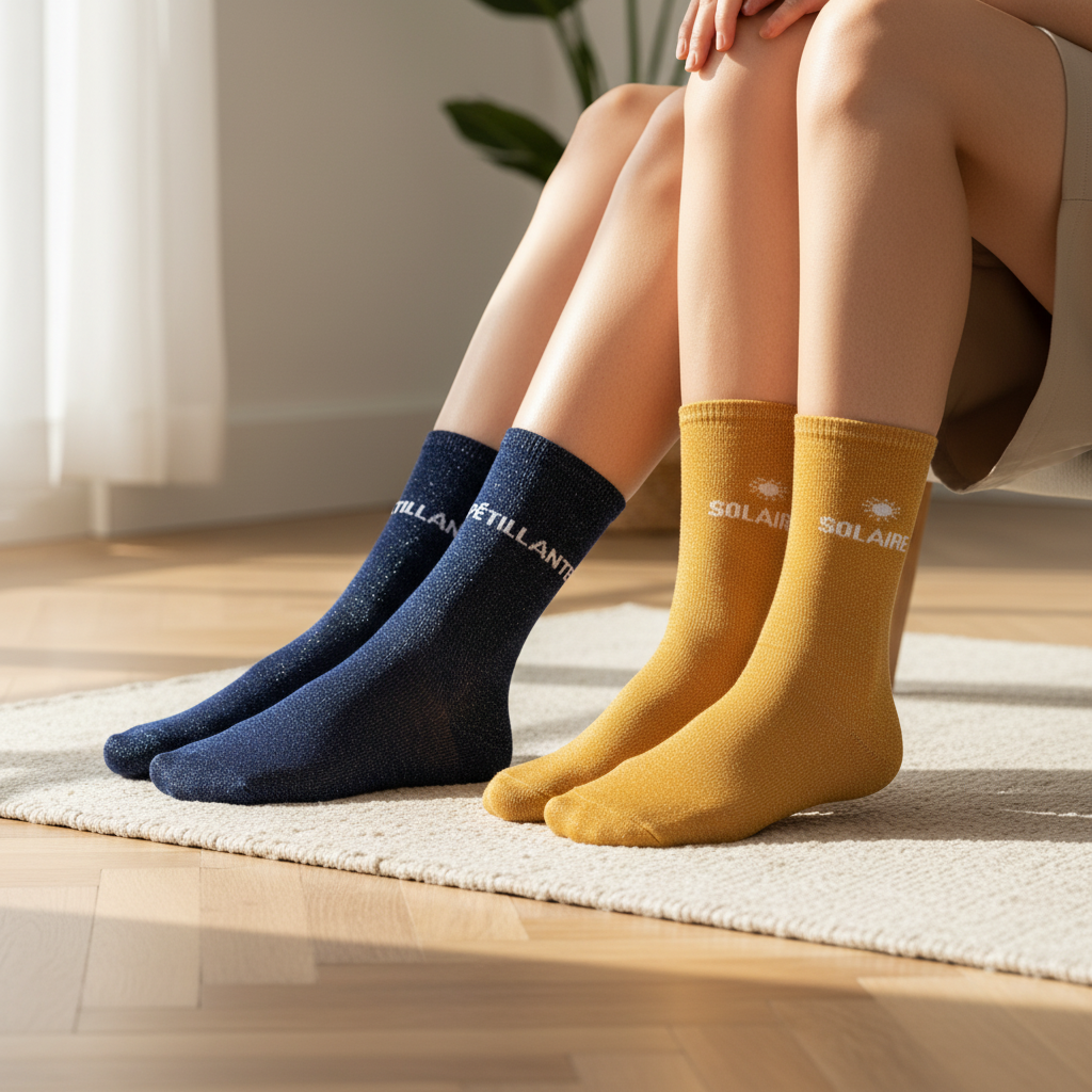 Succombez au charme irrésistible des chaussettes femme lurex, l’accessoire qui combine mode, humour et éclat. Leur fil lurex brillant capte la lumière avec élégance, apportant un effet pailleté subtil, parfait pour les amatrices de looks modernes et féminins. Chaque paire véhicule un petit message drôle et complice, pour affirmer son humeur ou sa personnalité avec légèreté. Idéales à offrir, ces chaussettes sont livrées dans un blister raffiné “P’tits mots d’Amour” et se transforment en une excellente idée cadeau pour toutes les occasions : Saint-Valentin, Noël, fête des mères, ou simplement pour faire sourire. Disponibles en taille unique femme 36/41, elles assurent un confort optimal, une bonne élasticité et un touché doux agréable à porter. Un indispensable du dressing féminin, aussi pétillant que confortable !