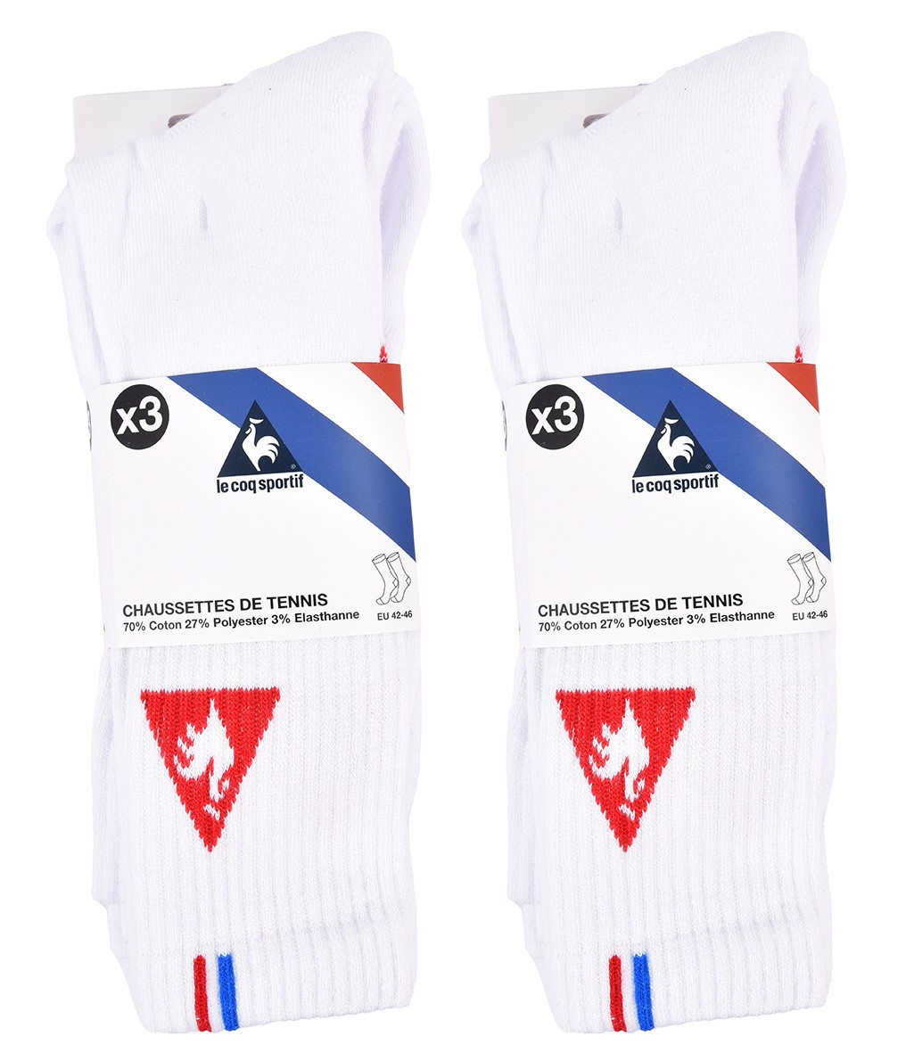 Chaussettes homme TENNIS CREW Sportswear LE COQ SPORTIF Vendues en Pack Retrouvez notre gamme LE COQ SPORTIF avec des caractéristiques techniques qui vous apporteront confort, maintien et respirabilité
