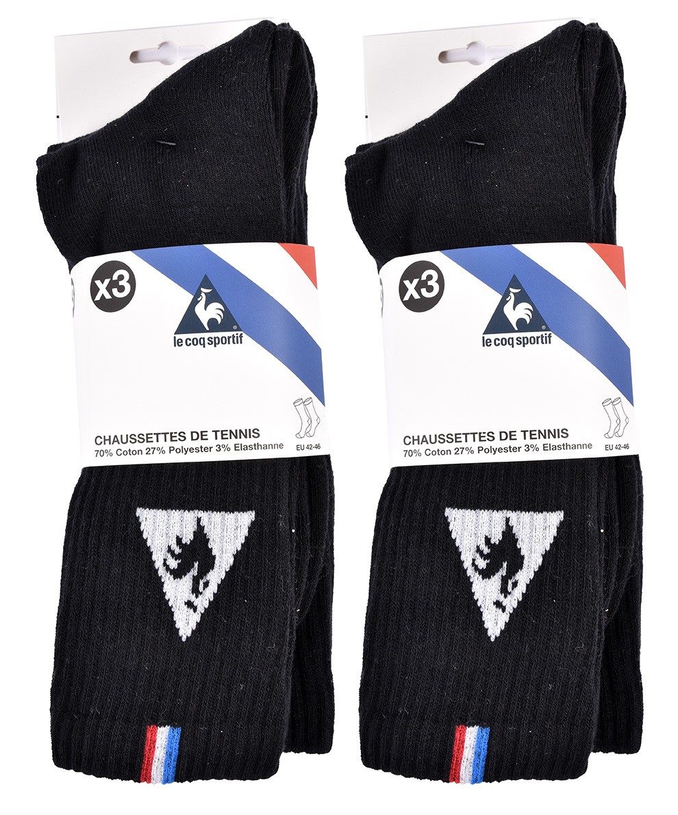 Chaussettes homme TENNIS CREW Sportswear LE COQ SPORTIF Vendues en Pack Retrouvez notre gamme LE COQ SPORTIF avec des caractéristiques techniques qui vous apporteront confort, maintien et respirabilité