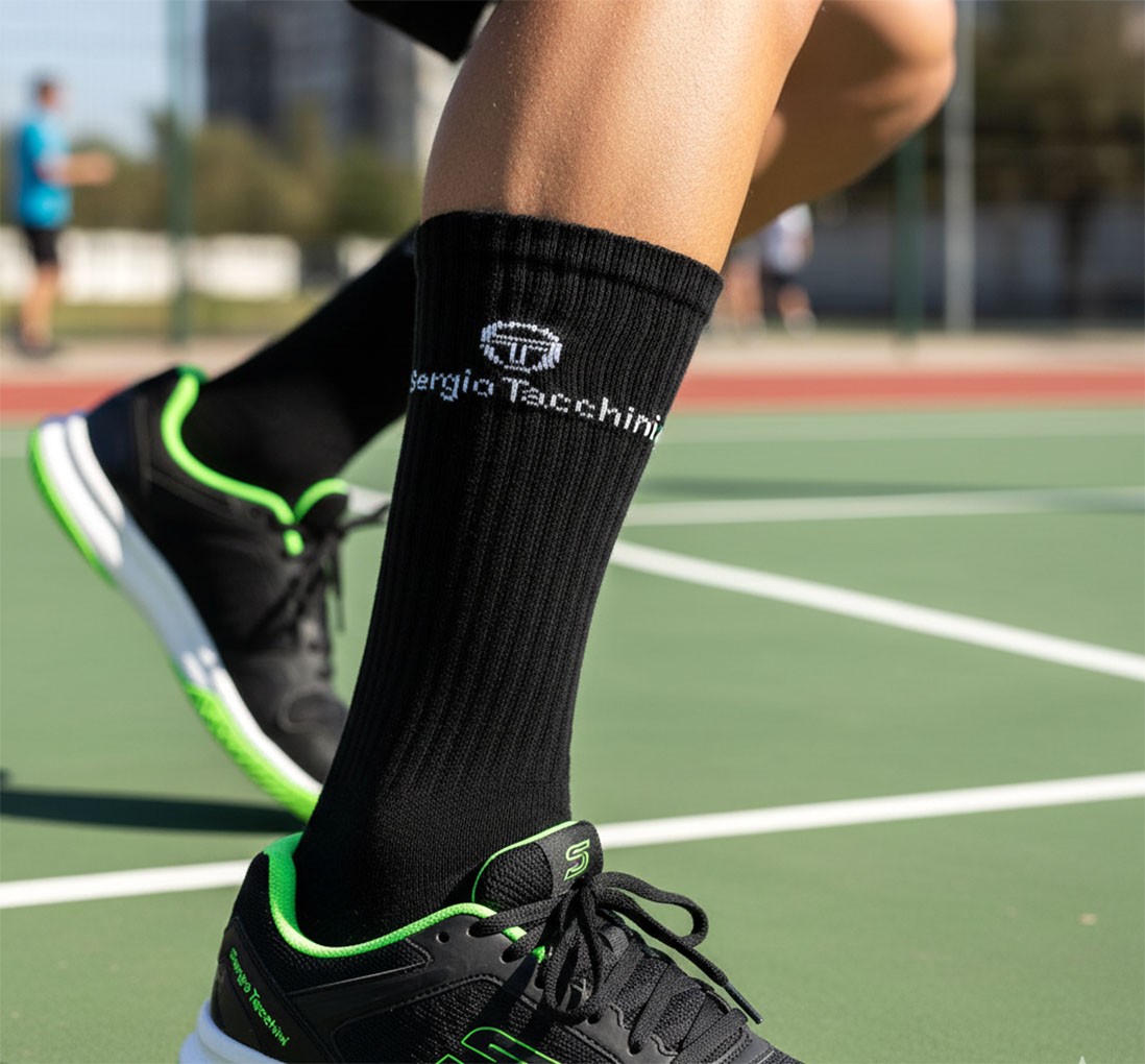 Chaussettes Homme Tennis Sportswear – Sergio Tacchini (Pack) Offrez confort, performance et style avec ce pack de chaussettes Sergio Tacchini Tennis Sportswear pour homme. Idéales pour la pratique du sport comme pour un usage quotidien, elles maintiennent parfaitement le pied et garantissent une respirabilité optimale. Leur coupe mi-mollet (crew) assure un ajustement confortable et un bon maintien durant l’effort. Pourquoi choisir Sergio Tacchini ? Fondée en 1966 par le champion de tennis italien Sergio Tacchini, la marque incarne l’authenticité, le style et l’innovation. Pionnière dans l’univers du sportswear haut de gamme, elle a marqué l’histoire du tennis en introduisant couleurs et motifs dans un sport jusque-là très classique. Aujourd’hui encore, Sergio Tacchini continue d’unir sport, mode et culture à travers des collections emblématiques. Caractéristiques produit : Pack de chaussettes homme Tennis Sportswear Coupe : mi-mollet (Crew) pour confort et maintien Couleurs disponibles : Blanc, Noir ou Assorti Tailles : 39/42 – 43/46 Composition : coton majoritaire, respirant et doux Entretien : lavable en machine à 30°C Idéales pour : La pratique du tennis et des sports intensifs Un look sportswear au quotidien Offrir un cadeau original et utile signé Sergio Tacchini