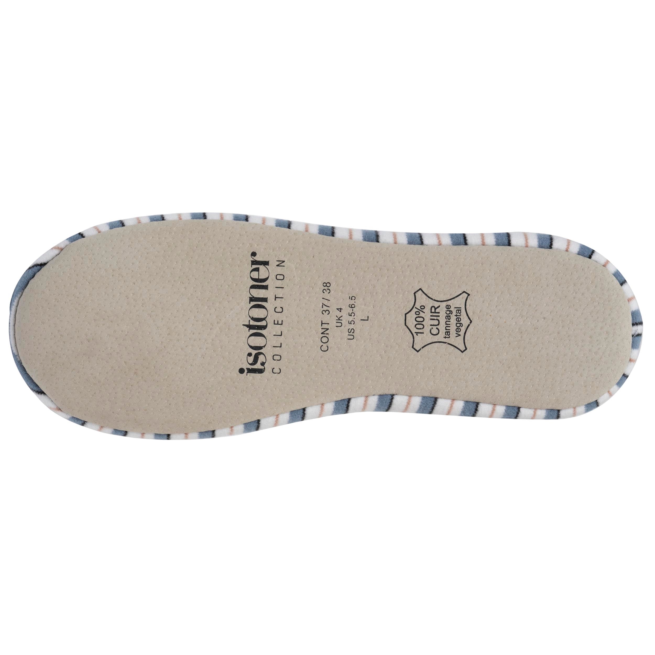 Ces chaussons ballerines femme en jersey au toucher ultra doux de couleur rayure marinière sont modernes et confortables : elles se distinguent par leur grand nœud ultra élégant. Le coton utilisé pour l'intérieur de ces chaussons est issu de l'agriculture biologique. La semelle intérieure est en mousse moelleuse et est adaptée à votre pied. La semelle extérieure a bénéficié d'un tannage végétal. Ce chausson ballerine femme se porte comme une seconde peau agréable et pratique. Ces pantoufles ballerines sont lavables en machine à 30°C.