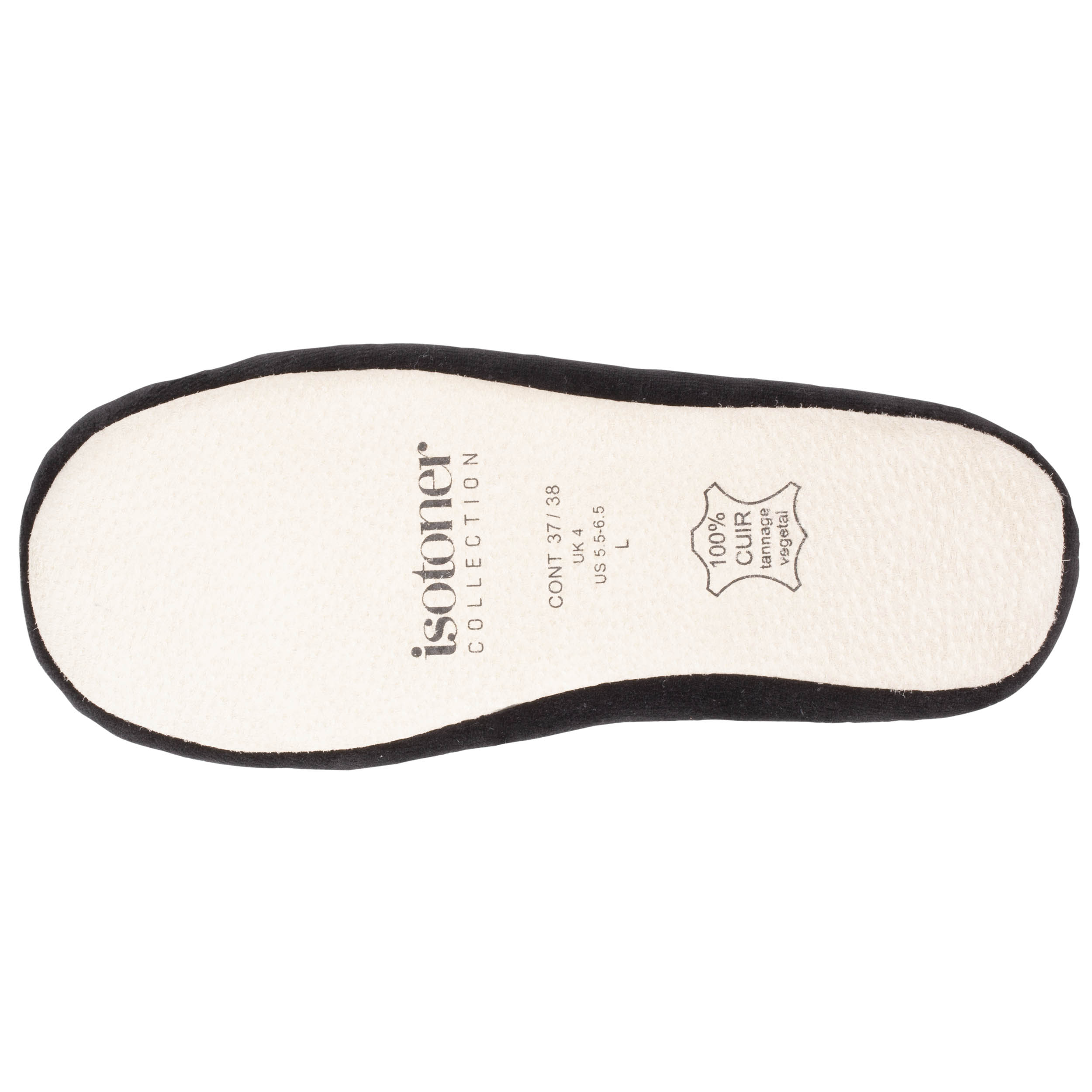 Isotoner vous présente l'iconique ballerine Grand Noeud. Chaque détail est pensé pour que qualité, esthétisme et confort soient au rendez-vous. Ces chaussons ballerines stretch avec une semelle souple, effet seconde peau, apportent à vos pieds un bien-être et un confort incroyables. Outre l'élégance de leur grand nœud, le velours biologique rend ces chaussons ballerines extrêmement doux au toucher. La semelle extérieure de ce chausson est en cuir et a bénéficié d'un tannage végétal, une alternative plus écologique pour teindre le cuir que le tannage traditionnel. Ces chaussons ballerines grand noeud pour femme sont lavables en machine à 30°C délicat.