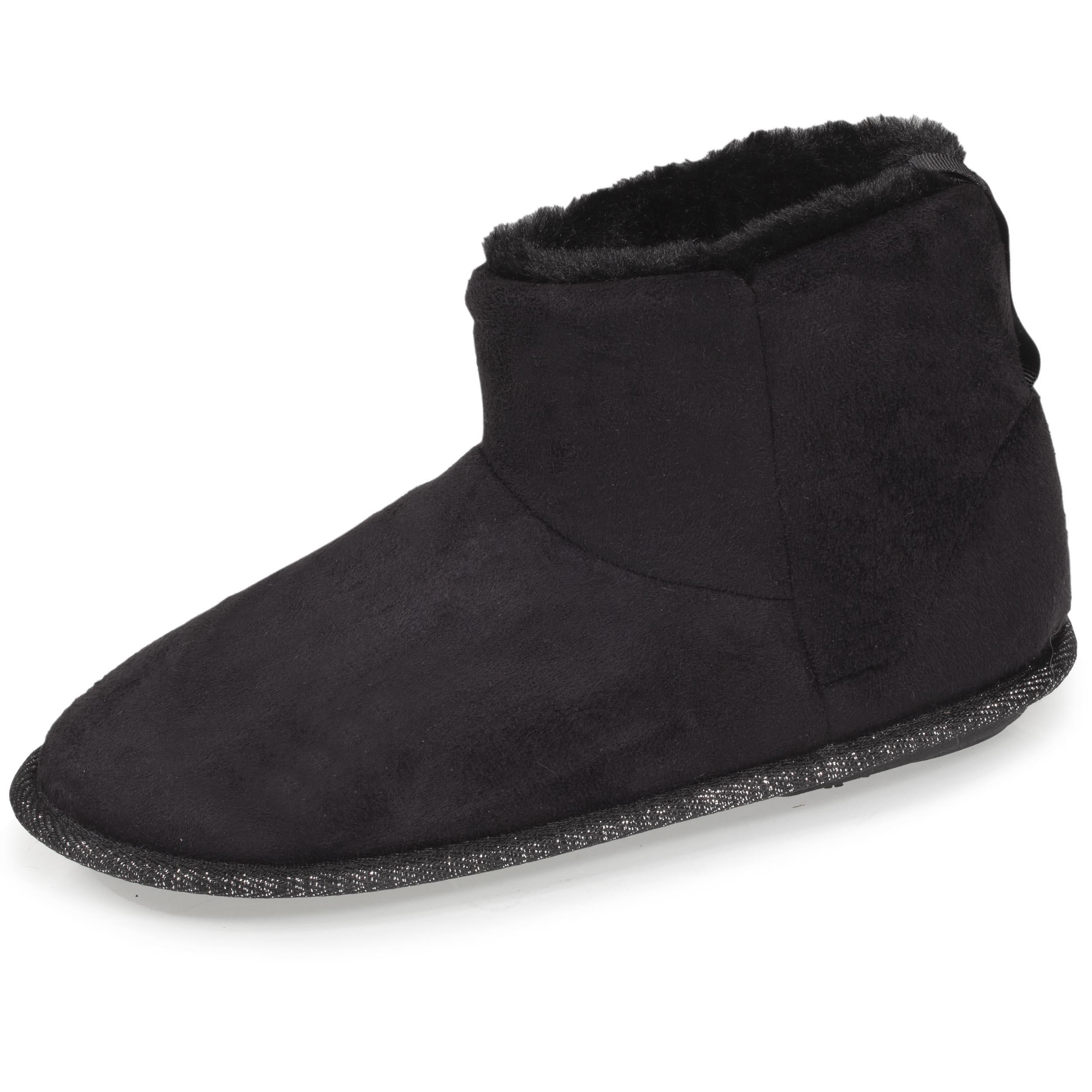 Parfaits pour l’hiver, ces bottillons d'intérieur noirs en suédine associent confort et style. Ces chaussons vous assurent un confort optimal grâce aux différentes mousses utilisées. La matière suédine est une matière très agréable au toucher, combinée à son intérieur en imitation fourrure, ces chaussons vous apporteront douceur et chaleur pour vos soirées d'hiver. Ces chaussons sont lavables en machine à 30°C.